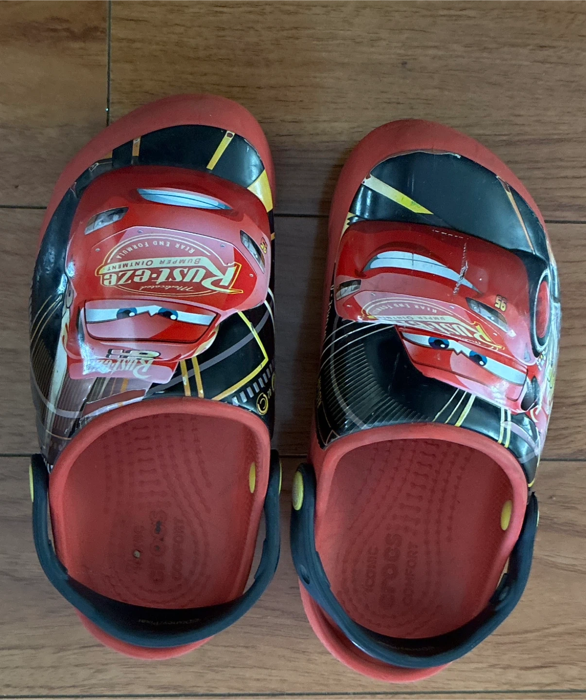 97These Crocs clogs feature Lightning McQueen! They are in used condition, but still have lots of life left. Size J1.