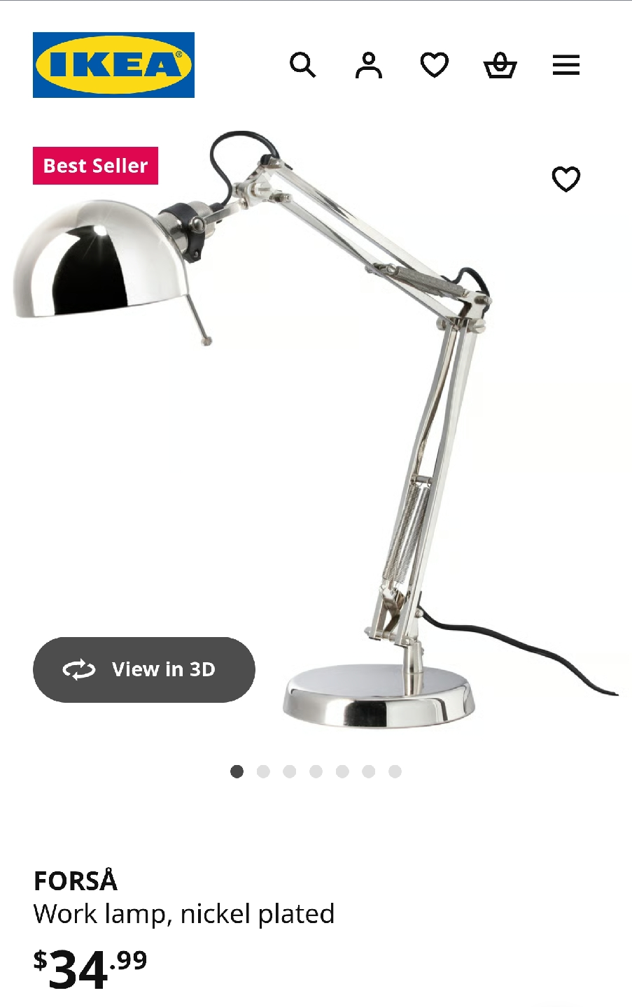 Selling a gently used IKEA FORSÅ work lamp in nickel plated finish. It's in great shape and provides excellent focused light for your desk or workspace. Retails for $34.99