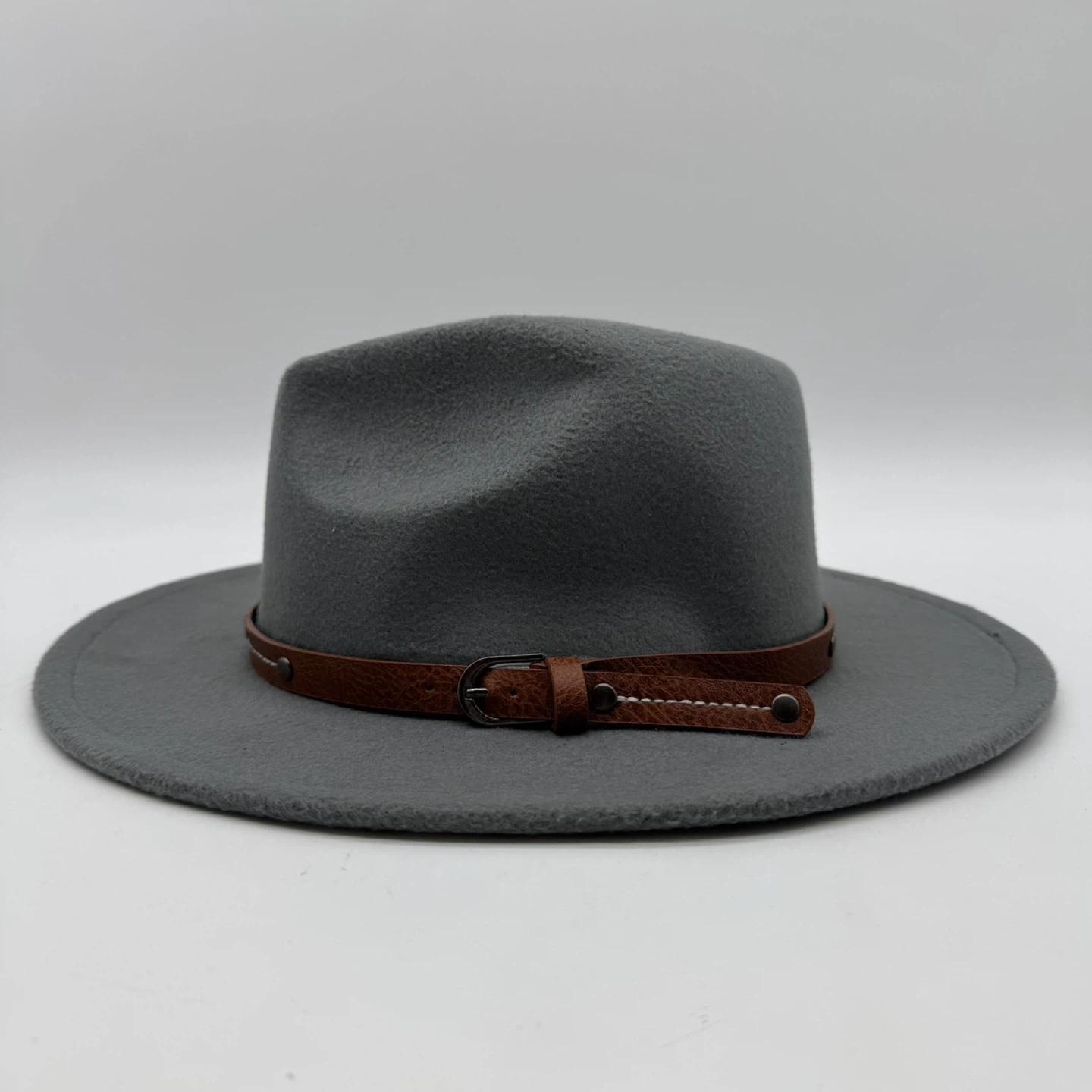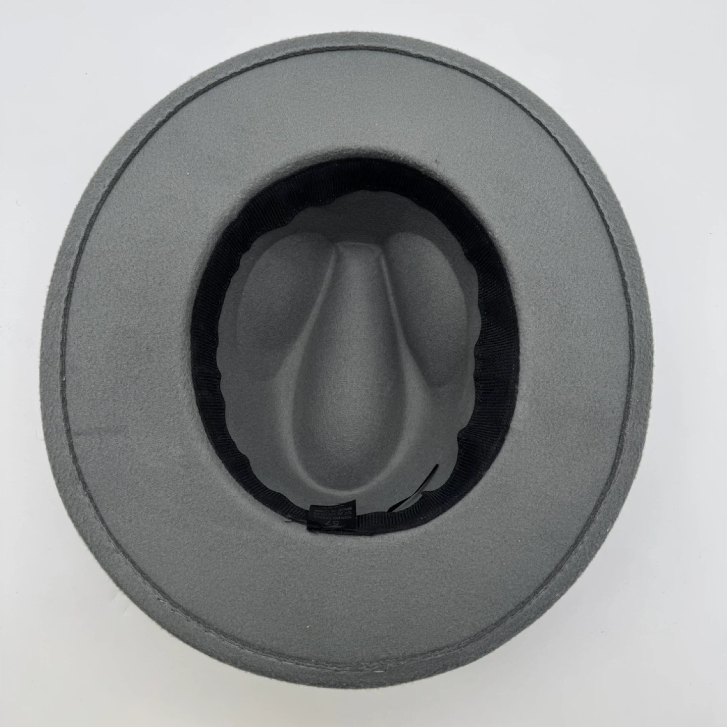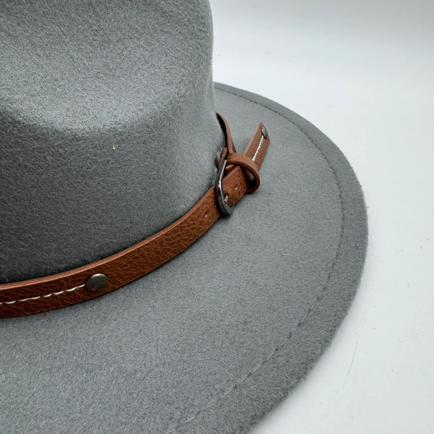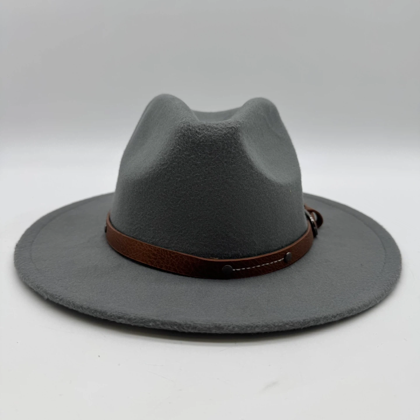 93Classic unisex fedora hat in gray felt polyester with a stylish brown faux leather band. • Size: 57 cm (medium fit) • Material: 100% Polyester • Color: Gray with brown trim • Wide brim design, versatile for men or women • Lightweight and comfortable Condition: Pre-owned, good condition (see pictures for details). Pickup in North york Delivery available for extra (P3)1273