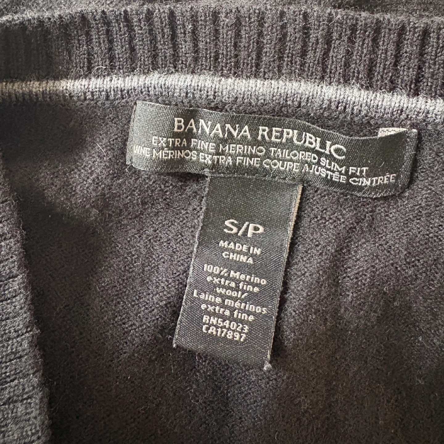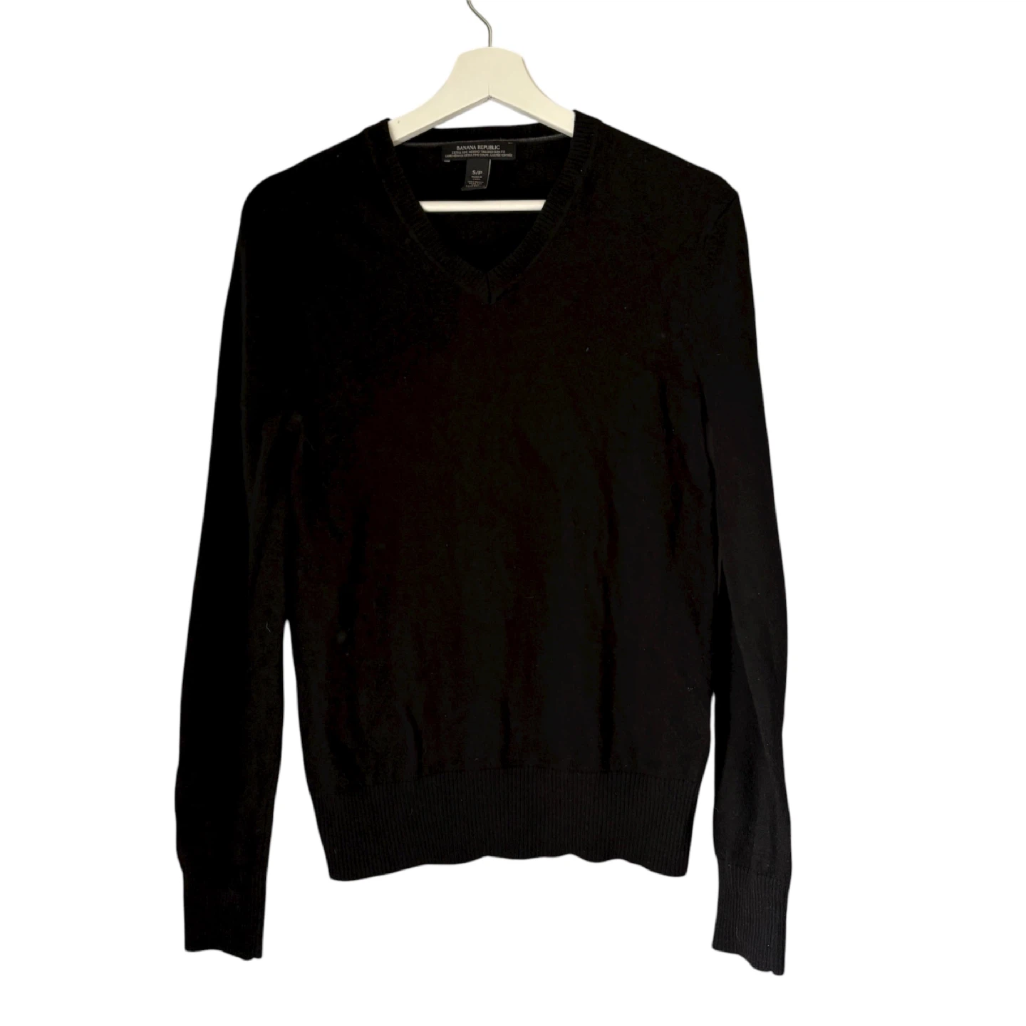 Banana Republic Black V-Neck 100% Merino Wool Sweater Size Small