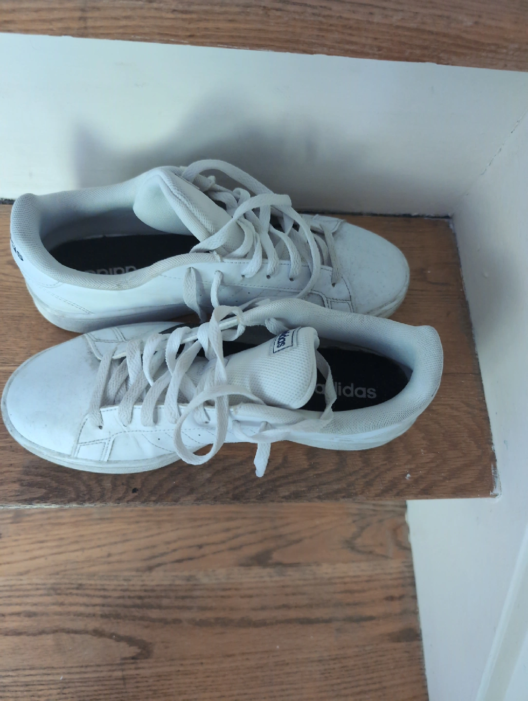Selling a pair of Adidas Grand Court sneakers in white. They are in used condition, as you can see in the photos. The size is US 8.
