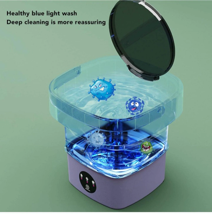 Check out this handy portable mini folding washing machine! It's perfect for small loads and easy to store. It's a lovely purple colour and in great condition. Ideal for travel or small spaces