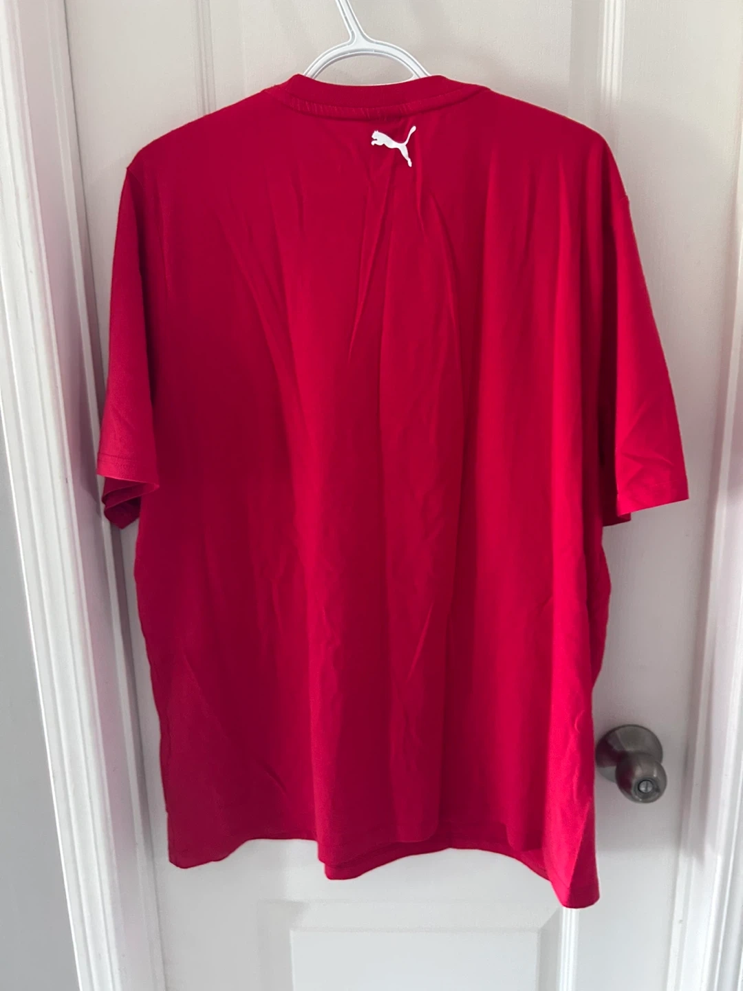 Selling a red Puma Ferrari t-shirt in size XL! It's in great condition and features the iconic Ferrari logo on the front and the Puma logo on the back. Perfect for any Ferrari or Puma fan!