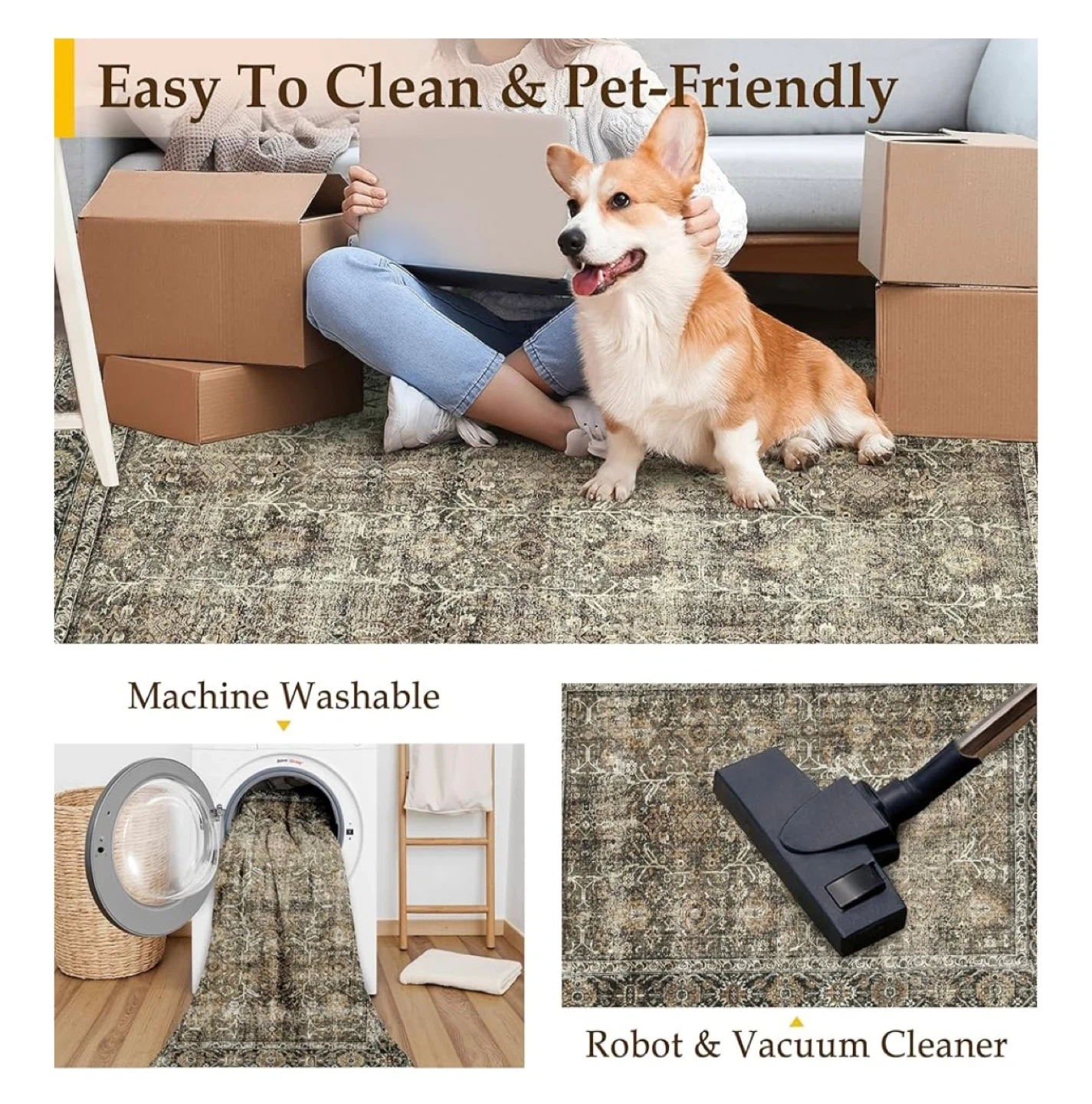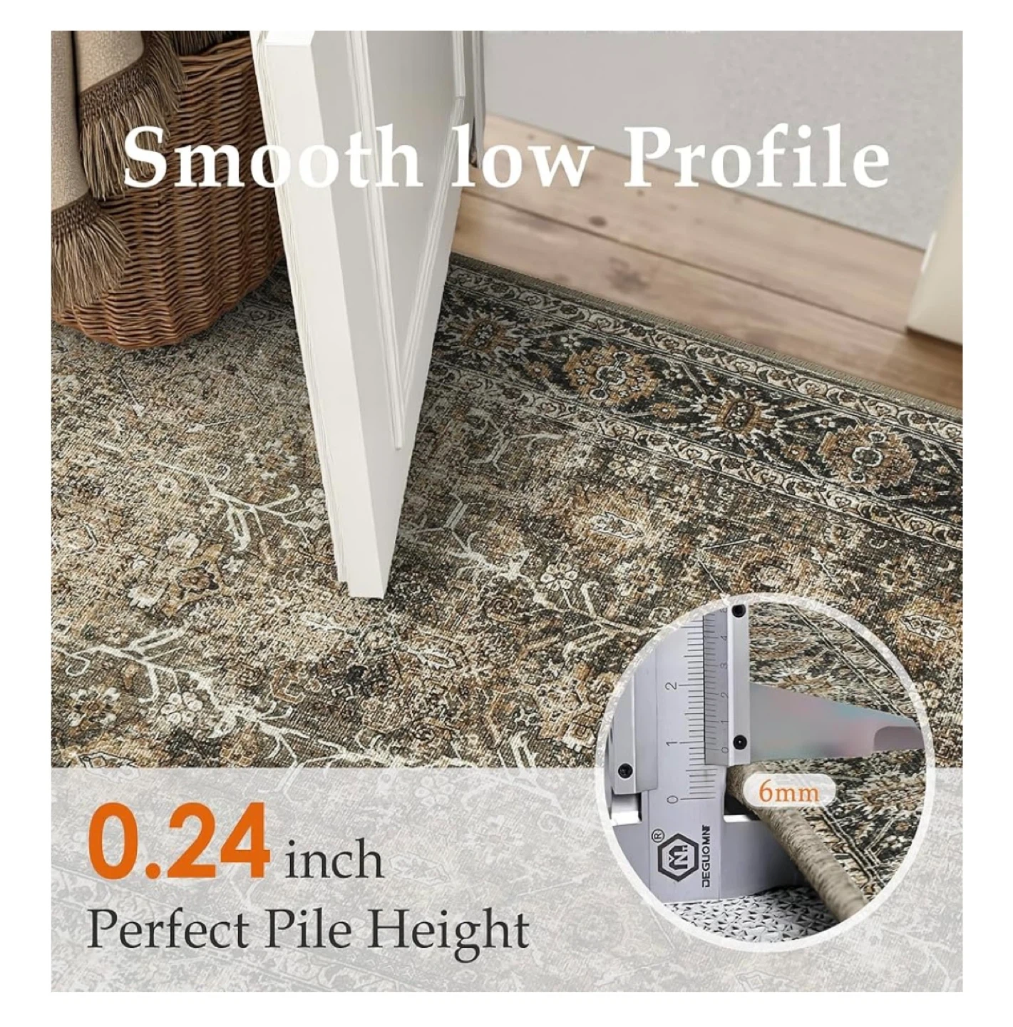 177This area rug is perfect for any space in your home! It's easy to clean and pet-friendly, making it a great choice for households with kids or animals. The rug has a smooth, low profile with a perfect pile height of 0.24 inches (6mm). It's also machine washable, so keeping it clean is a breeze