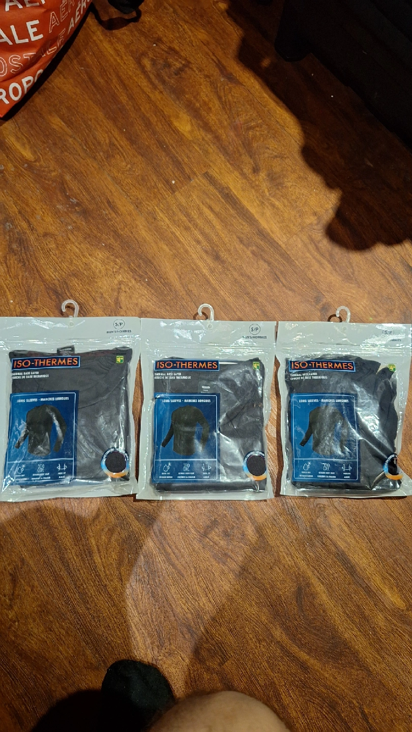276Selling three new Dollarama's ISO-THERMES thermal base layers. These are size S/P (Small/Petit) and are designed to be a thermal base layer. They feature: - Quick dry material - Retain body heat - Snug fit for comfort Never used. Selling below store's site.