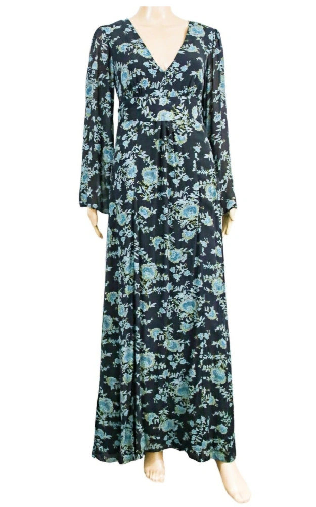 Monsoon Whimsical Maxi Dark Blue Floral Dress US Size UK10