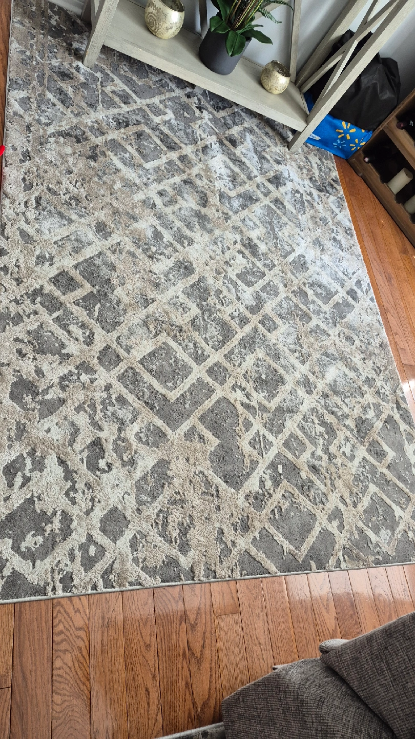 Selling a nice area rug with a grey patterned design! It's in good condition and would look great in any room of the house