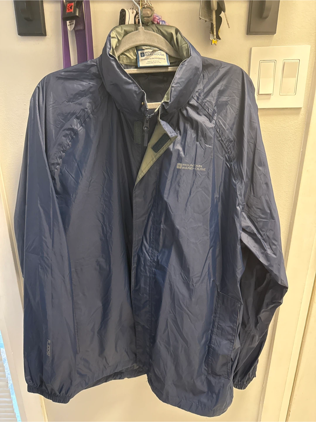 Selling a Men’s Mountain Warehouse rain jacket. It's in great condition and perfect for those rainy days! Features include IsoDry technology to keep you dry and comfortable.