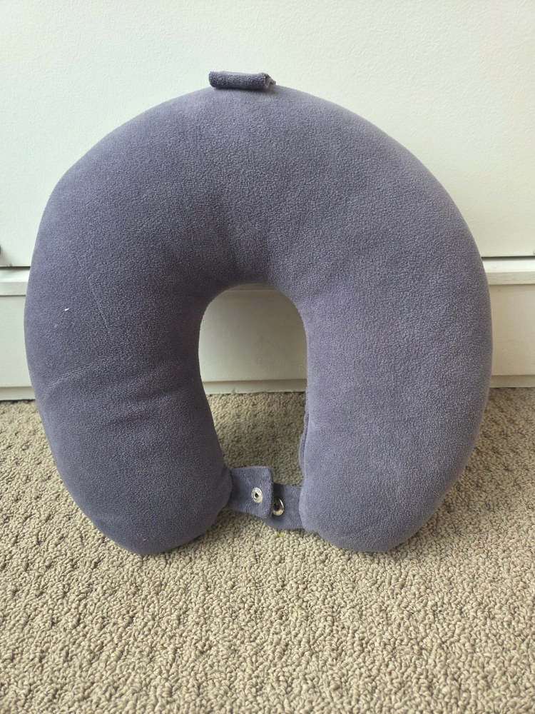 Selling a grey travel neck pillow! It's in great condition and ready for your next trip. Perfect for providing support and comfort while you travel by plane, train, or car