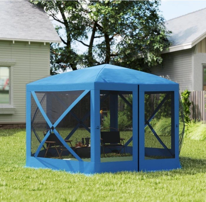 Outdoor Gazebo Screen Tent: Our conveniently designed pop up tent is great for family parties, picnics, sporting events, BBQs, days at the beach. This screen tent can pop up and fold down in seconds. This makes the pop up shelter is great for families as a sun shelter or play tent. Plus, it comes with its own carry bag, so transport and storage are super easy.