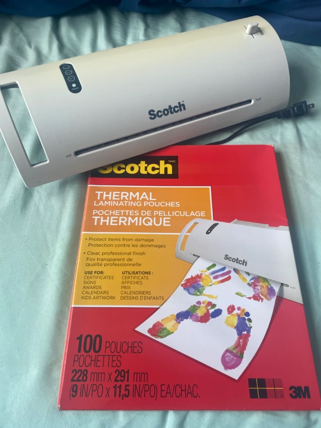 Selling a Scotch thermal laminator that's in great shape! There is yellowing around the top due to sunlight exposure (oopsie)! Included is a pack of lightly used laminating sheets. Perfect for certificates, signs, awards, calendars, and kids' artwork