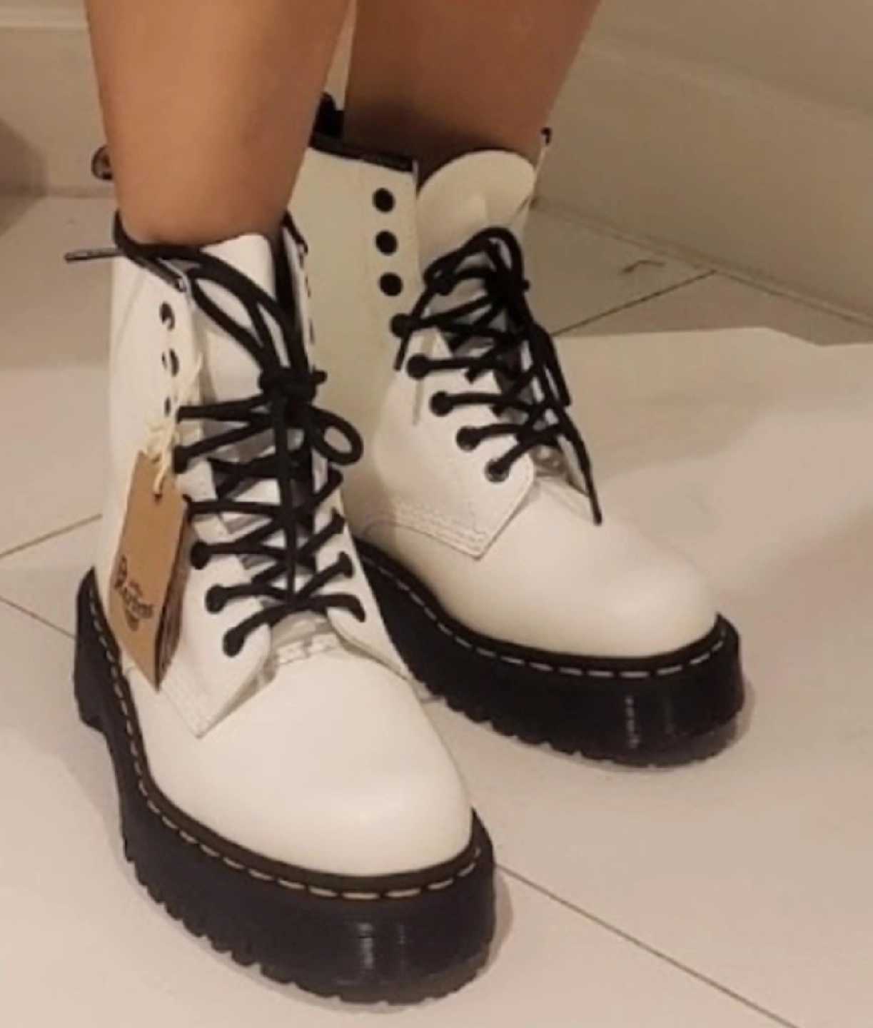 Selling a pair of Dr. Martens Jadon platform boots in white! They're in great condition and come with the original box. These boots are super stylish and perfect for adding some edge to your look. They're a women's size, please message me if you're interested! I'm size 7 down size 6 in Doc Martens.