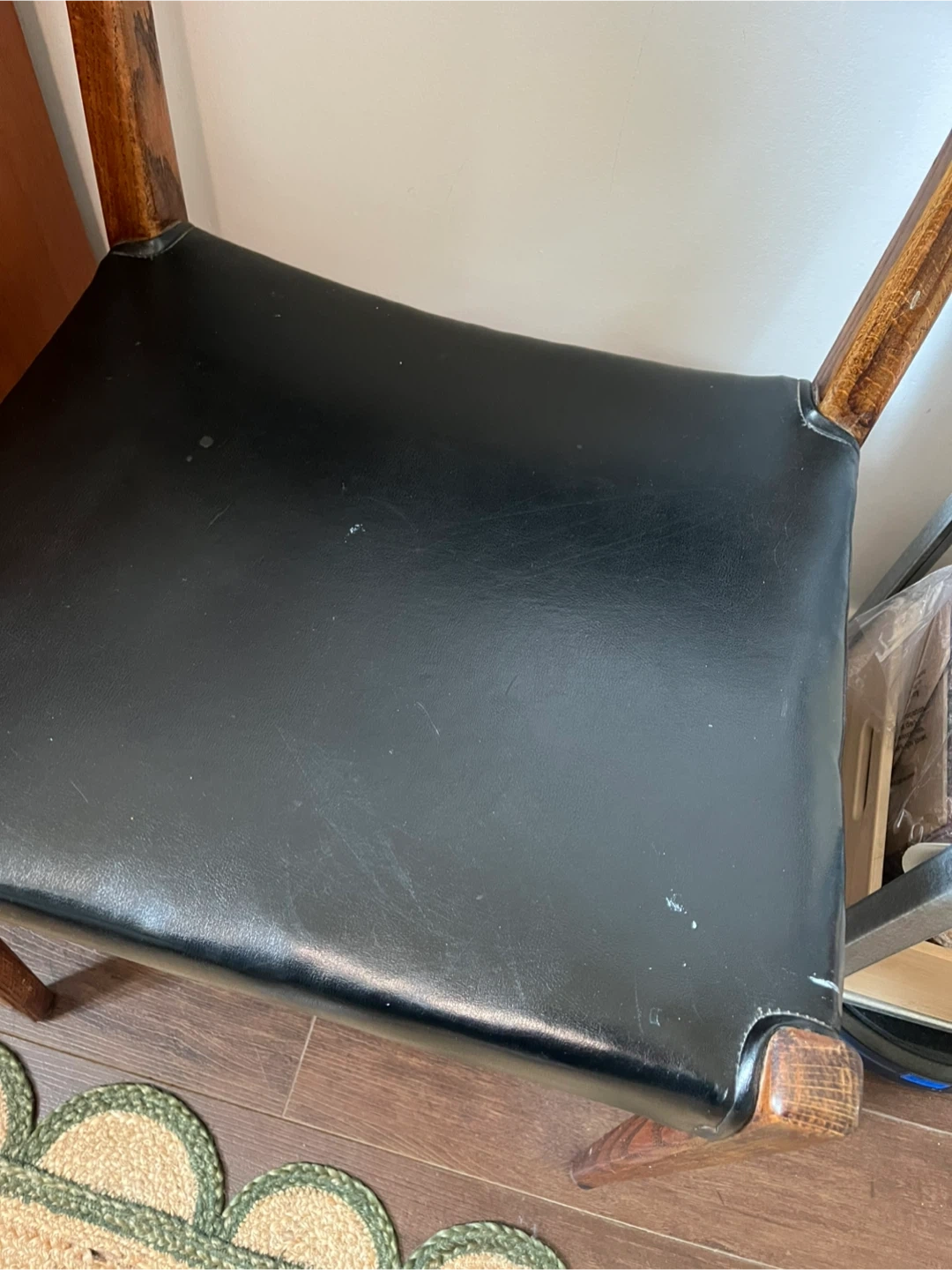 There is a small tear on the back of the chair as shown in the photos, and some wear on the seat. Still a stylish and sturdy piece!