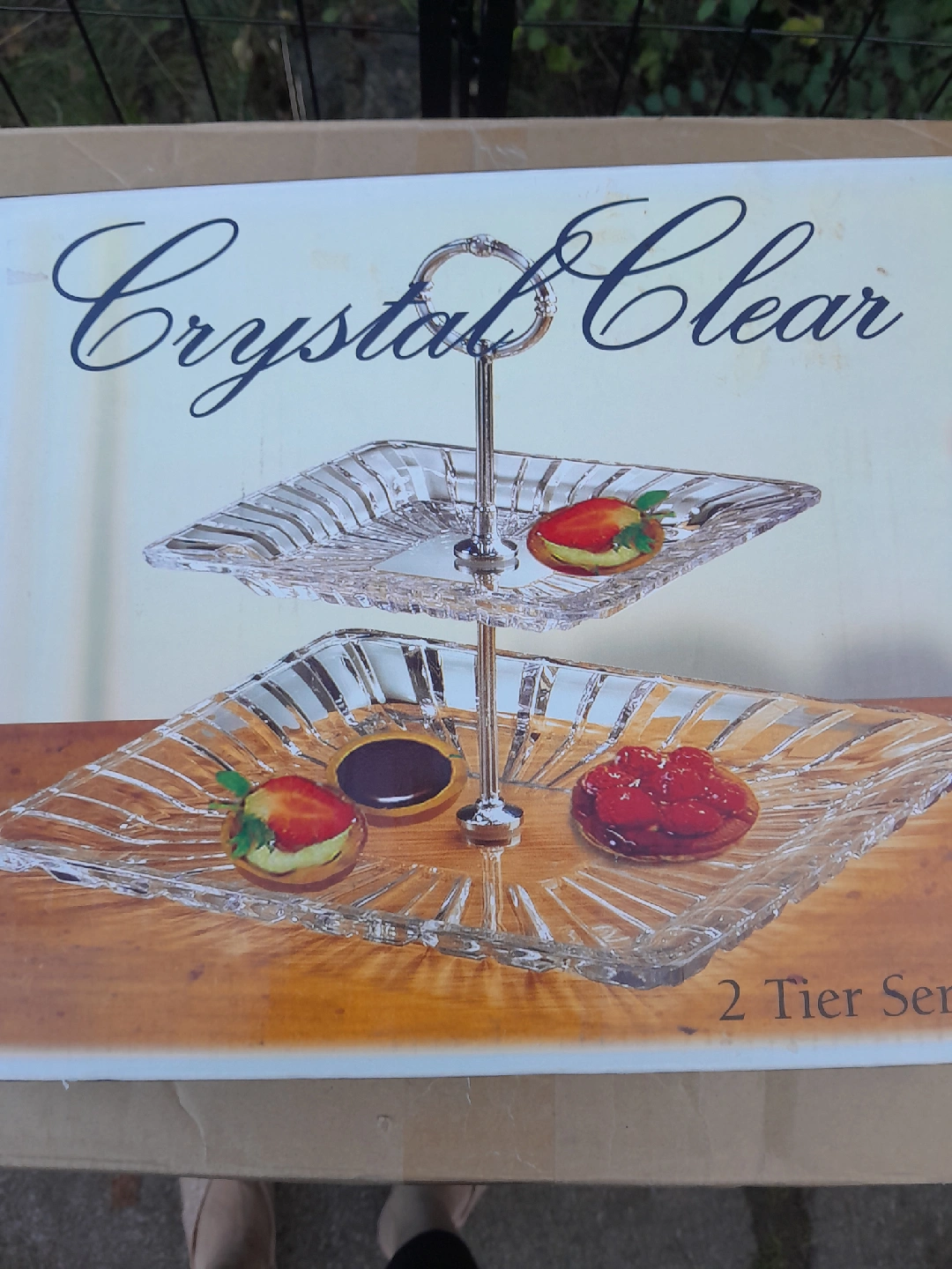 Selling a Crystal Clear 2 Tier Server! It's perfect for displaying desserts or appetizers. The server comes in its original box