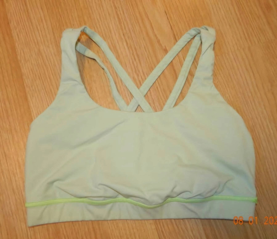 A light green Lululemon sports bra with a criss-cross back. It's in great condition and ready for a new home! size 6