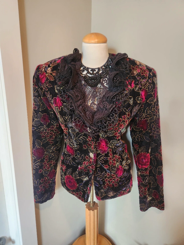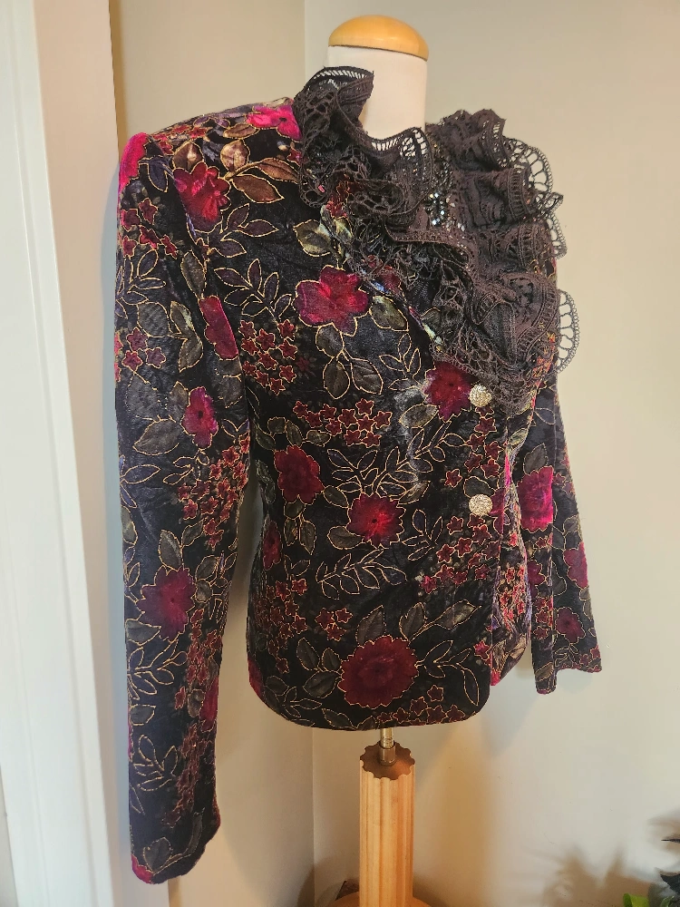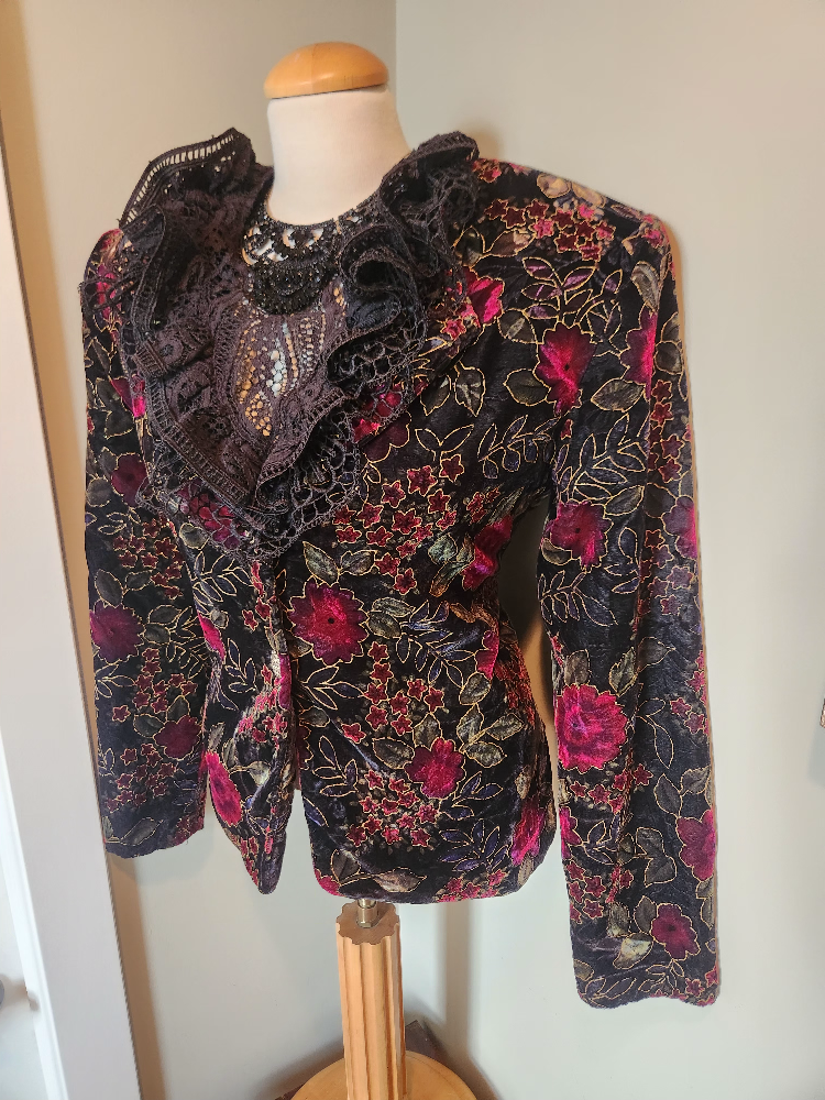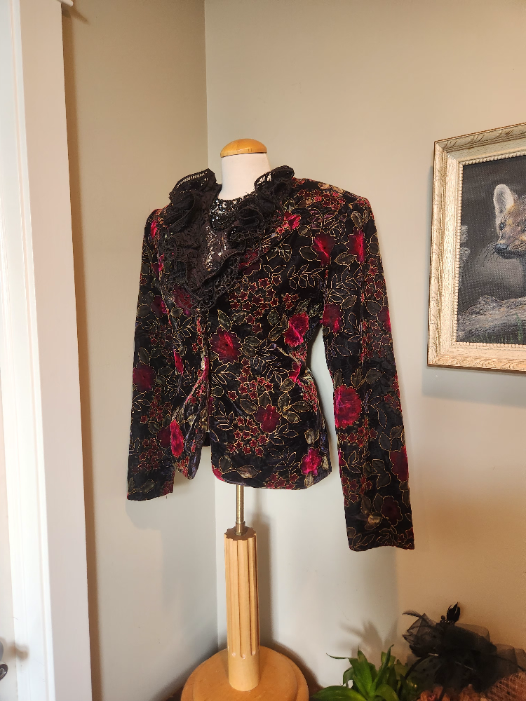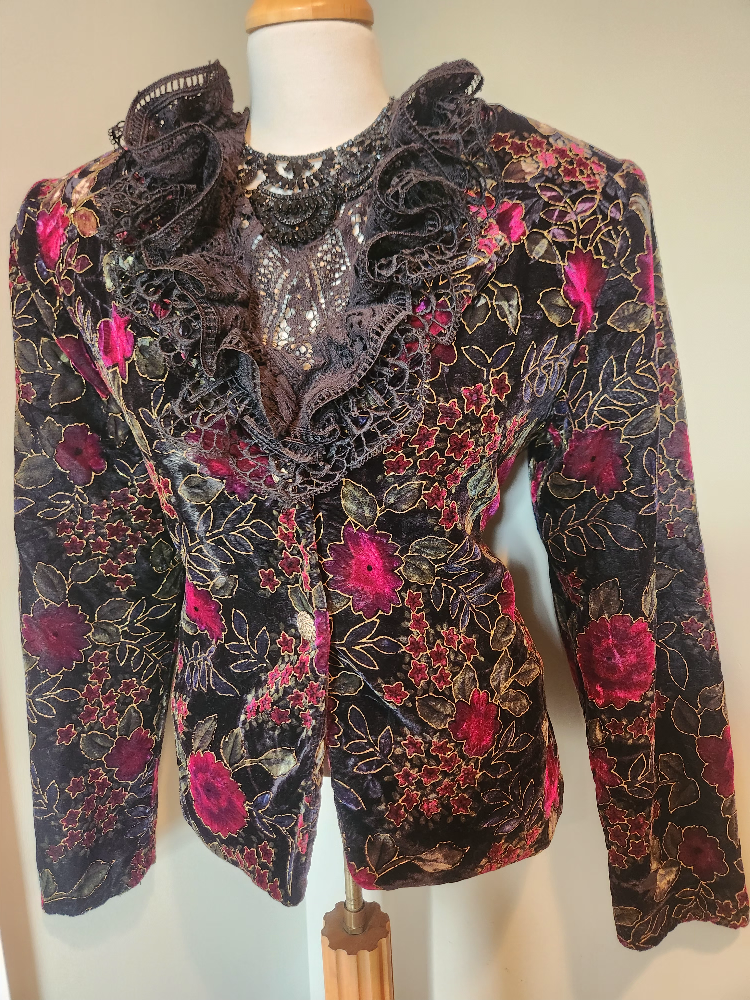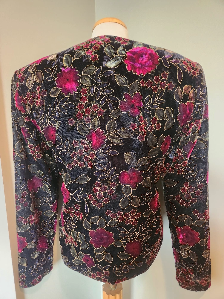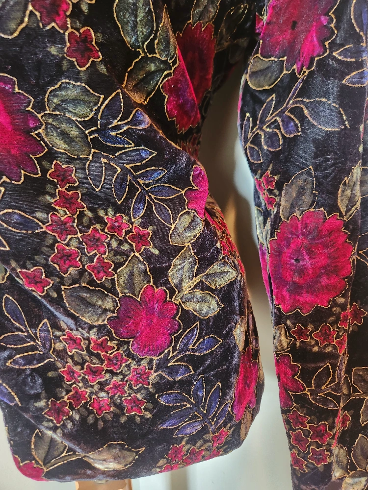 elegant 80's Floral Velvet Jacket with gold embossed Detail