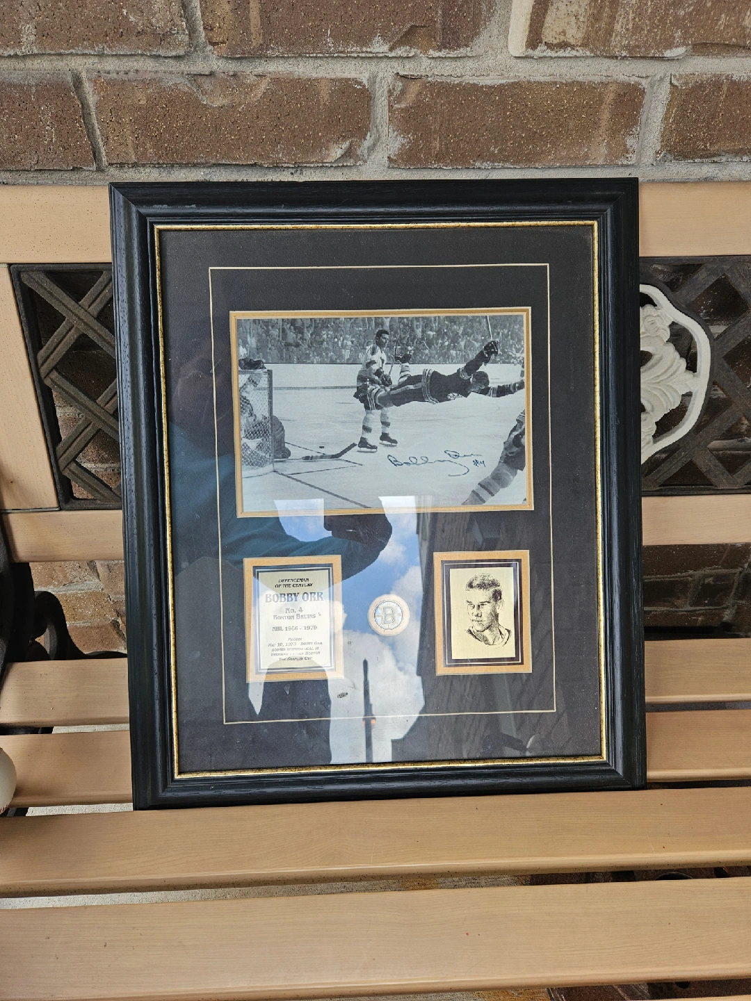 143Framed print featuring hockey legend Bobby Orr. It's a great piece for any hockey fan!