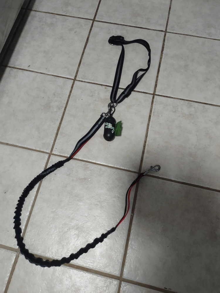 30Selling a black dog leash! It features a bungee cord section for a bit of give, making walks more comfortable for both you and your furry friend. It also comes with a convenient poop bag dispenser attached