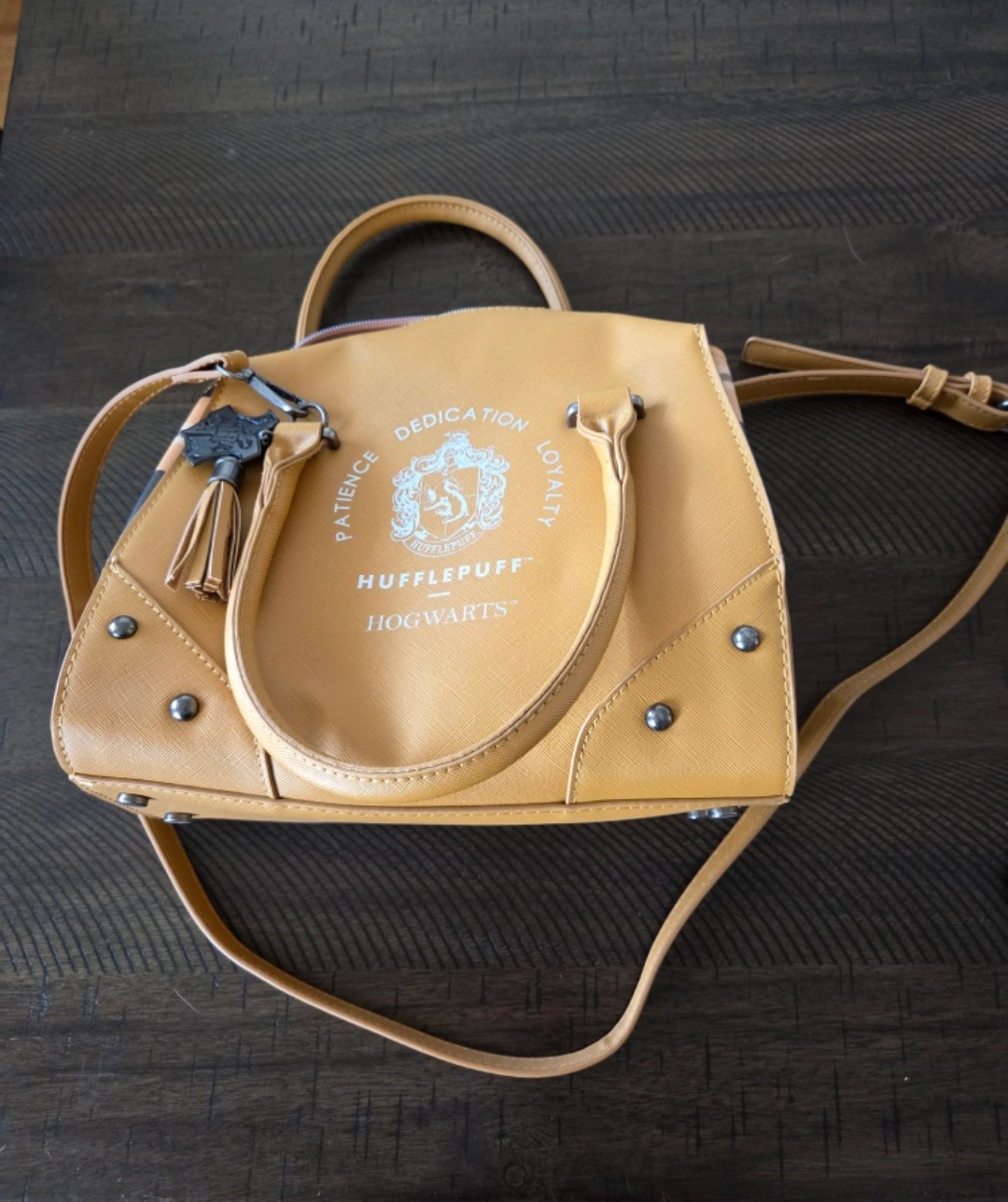 Selling a cute Hufflepuff purse. It's in great condition and features the Hufflepuff logo and colours. It's never been used! Includes long strap which is removable. Perfect for any Harry Potter fan!