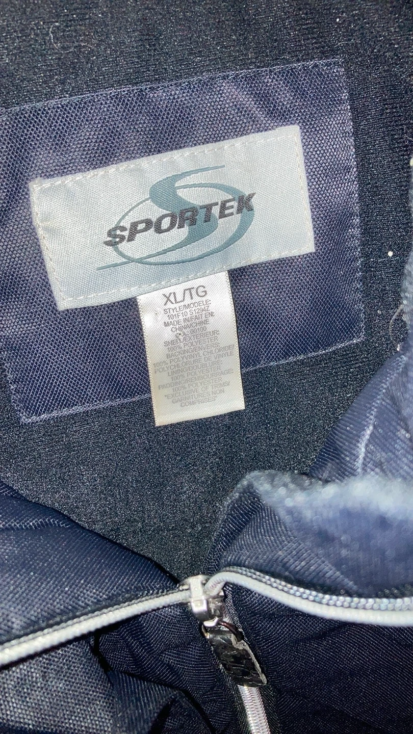Selling a Sportek black jacket in size XL/TG. It's in great condition and perfect for the cooler weather. The shell is 100% polyester, with backing made of polyvinyl chloride. The lining and padding are also 100% polyester. Pickup near Islington and Steeles