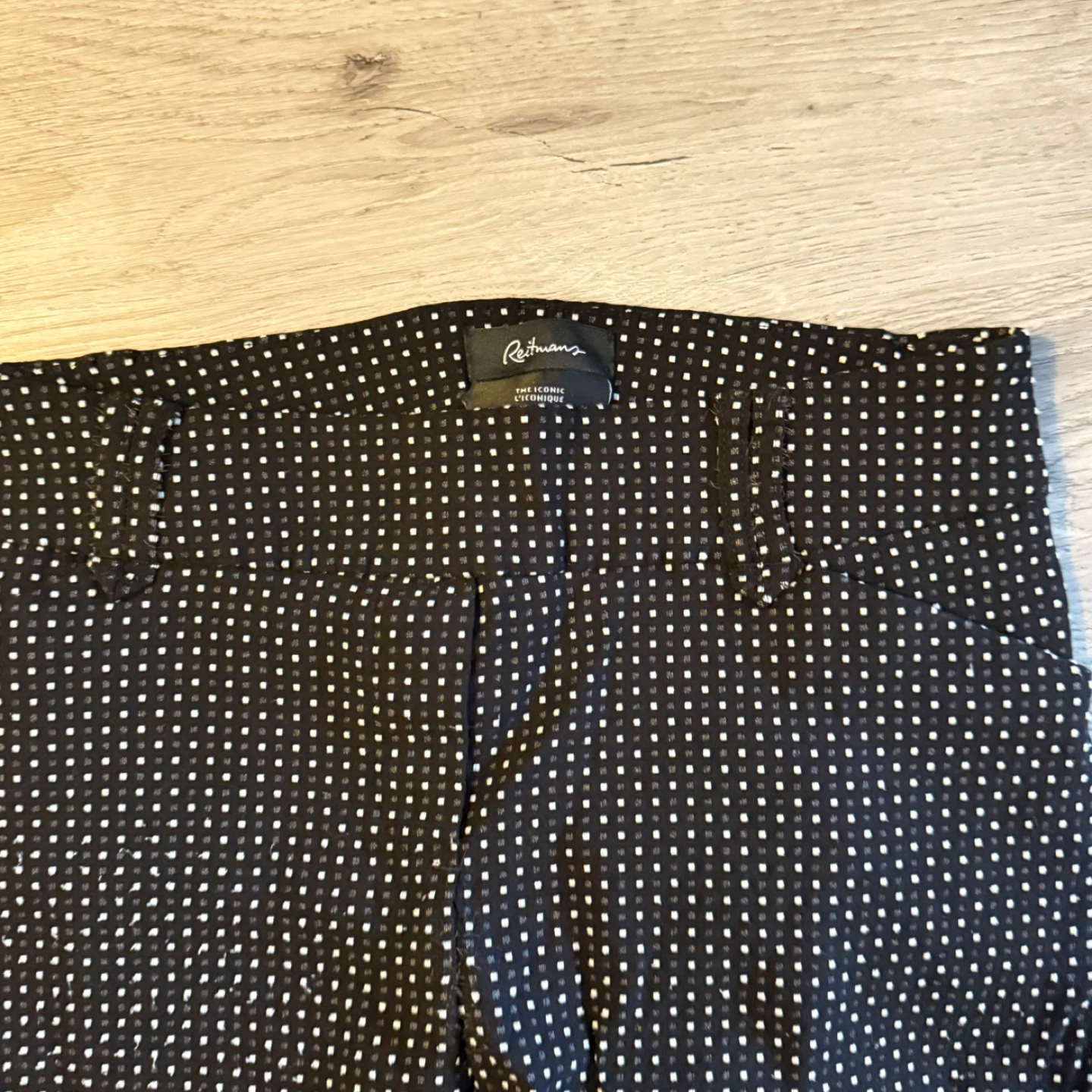 Reitmans pants in a black and white polka dot pattern. These pants are in great condition. They would be a great addition to your wardrobe!