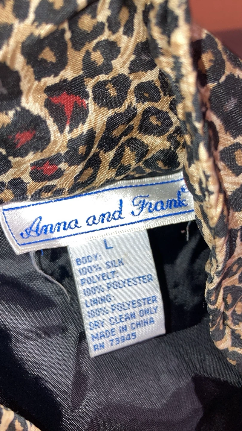 Selling a stylish Anna and Frank jacket in a fun leopard print! It's a size large and made with 100% silk for the body and 100% polyester for the lining and polyelt. This jacket would be a great addition to any wardrobe! Great condition. Pickup near Islington and Steeles