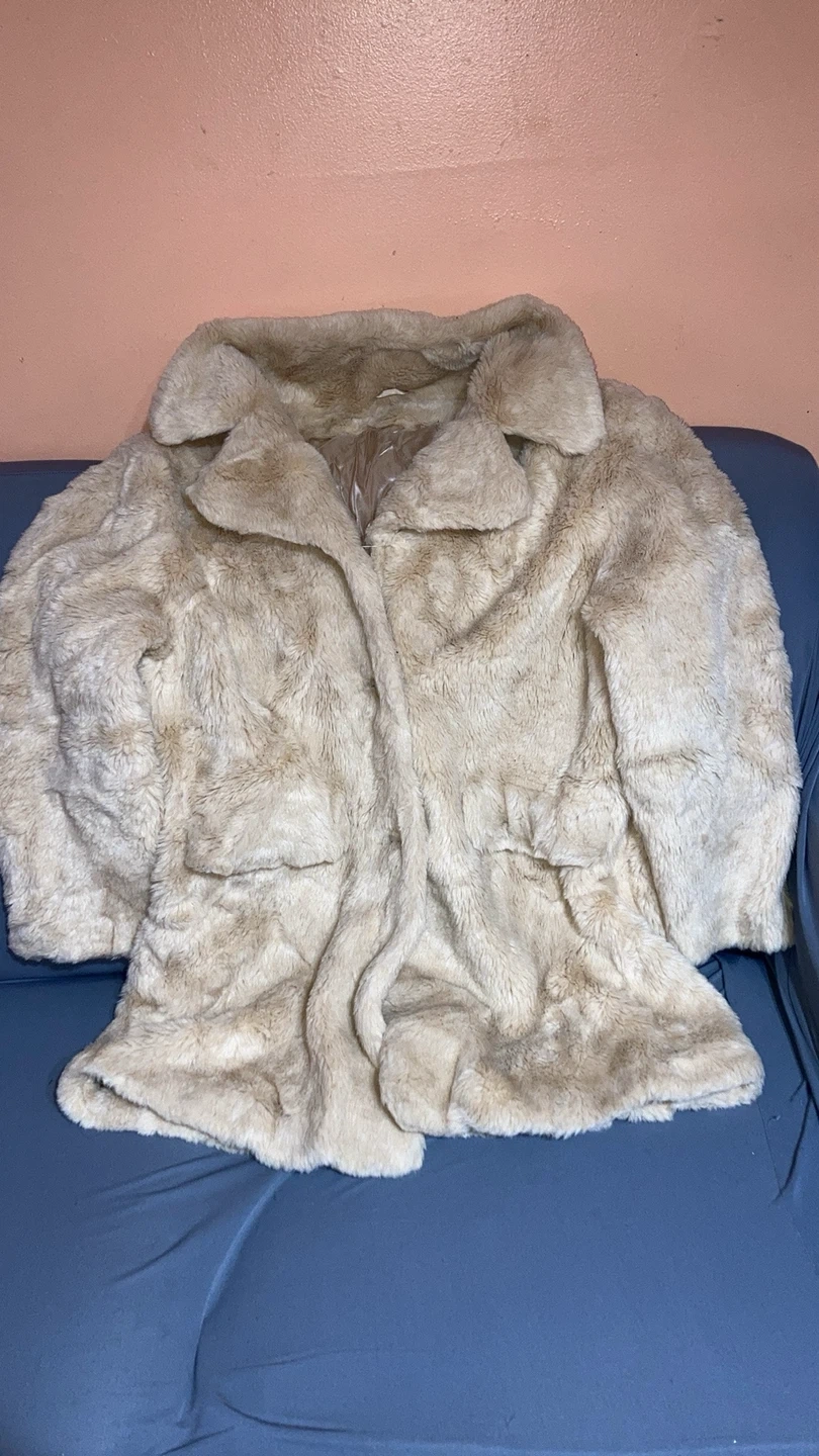 A cozy faux fur coat in a lovely beige colour! It's super soft and perfect for adding a touch of warmth and style to any outfit. Great for chilly days! Pickup near Islington and Steeles. Size XXL