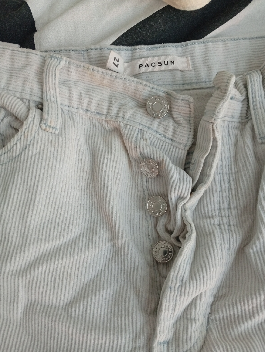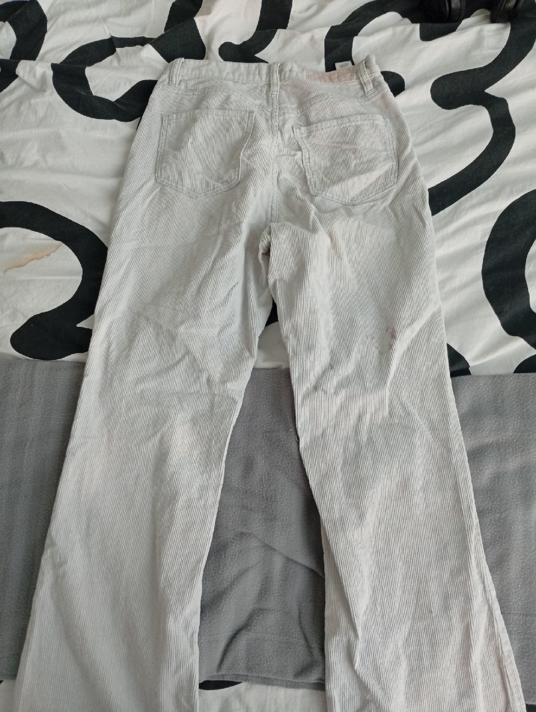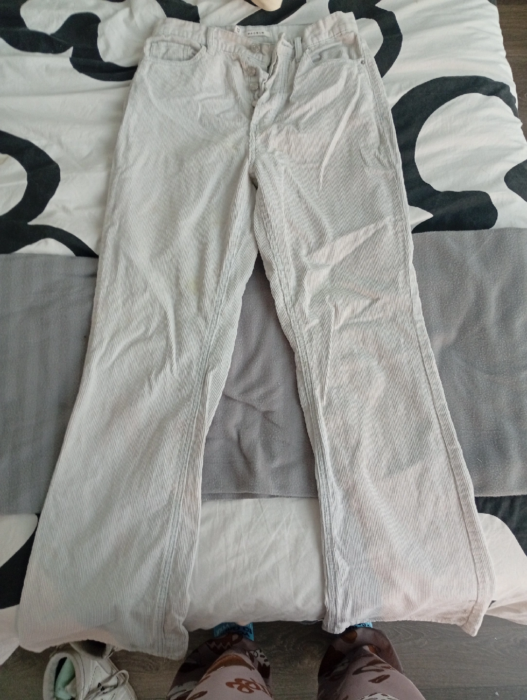 Selling a pair of Pacsun corduroy flare pants. They are a size 27 and in good condition. The pants are a light colour and feature a classic corduroy texture. Perfect for a retro or casual look!