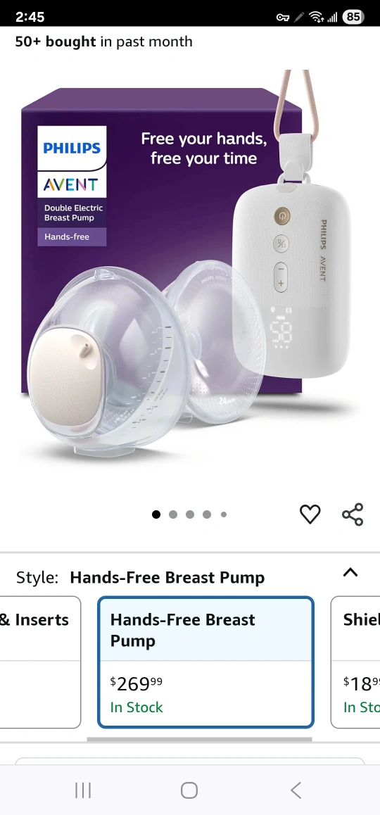 10I'm selling a Philips Avent Double Electric Breast Pump, hands-free model. It comes with all the components shown in the picture, including the different size inserts. Free your hands and your time! Brand New never opened!!!