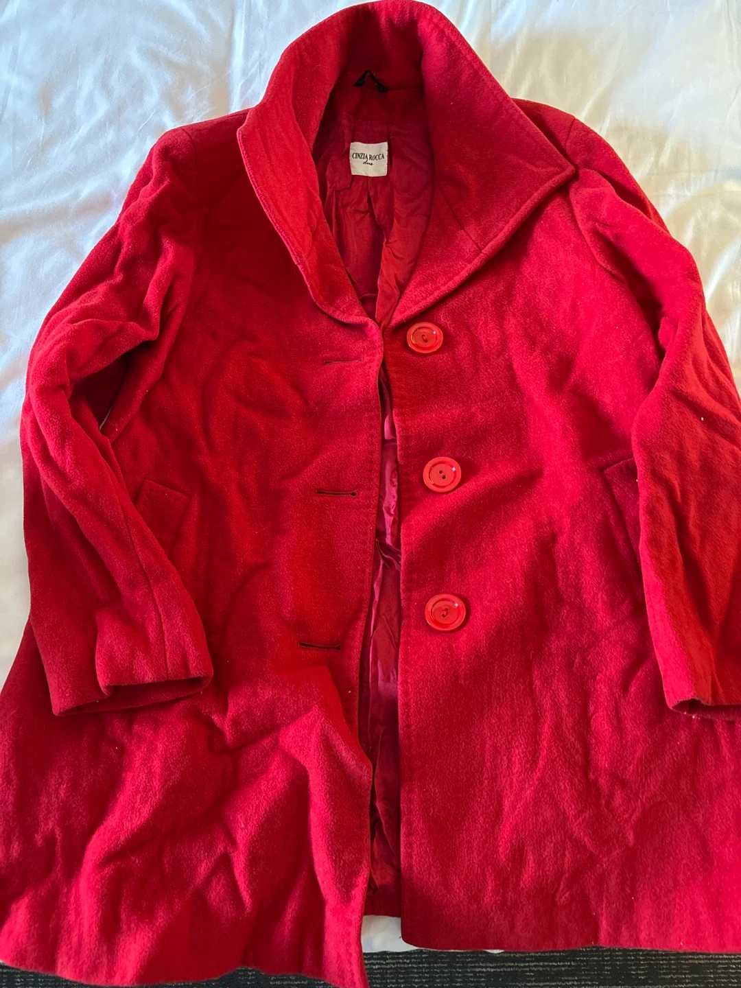 Selling a lovely red wool coat from Cinzia Rocca! It's in great shape and perfect for adding a pop of colour to your wardrobe. A stylish and warm choice for the cooler months