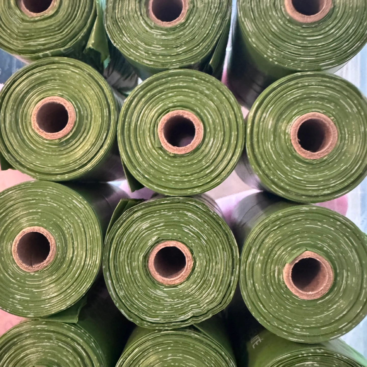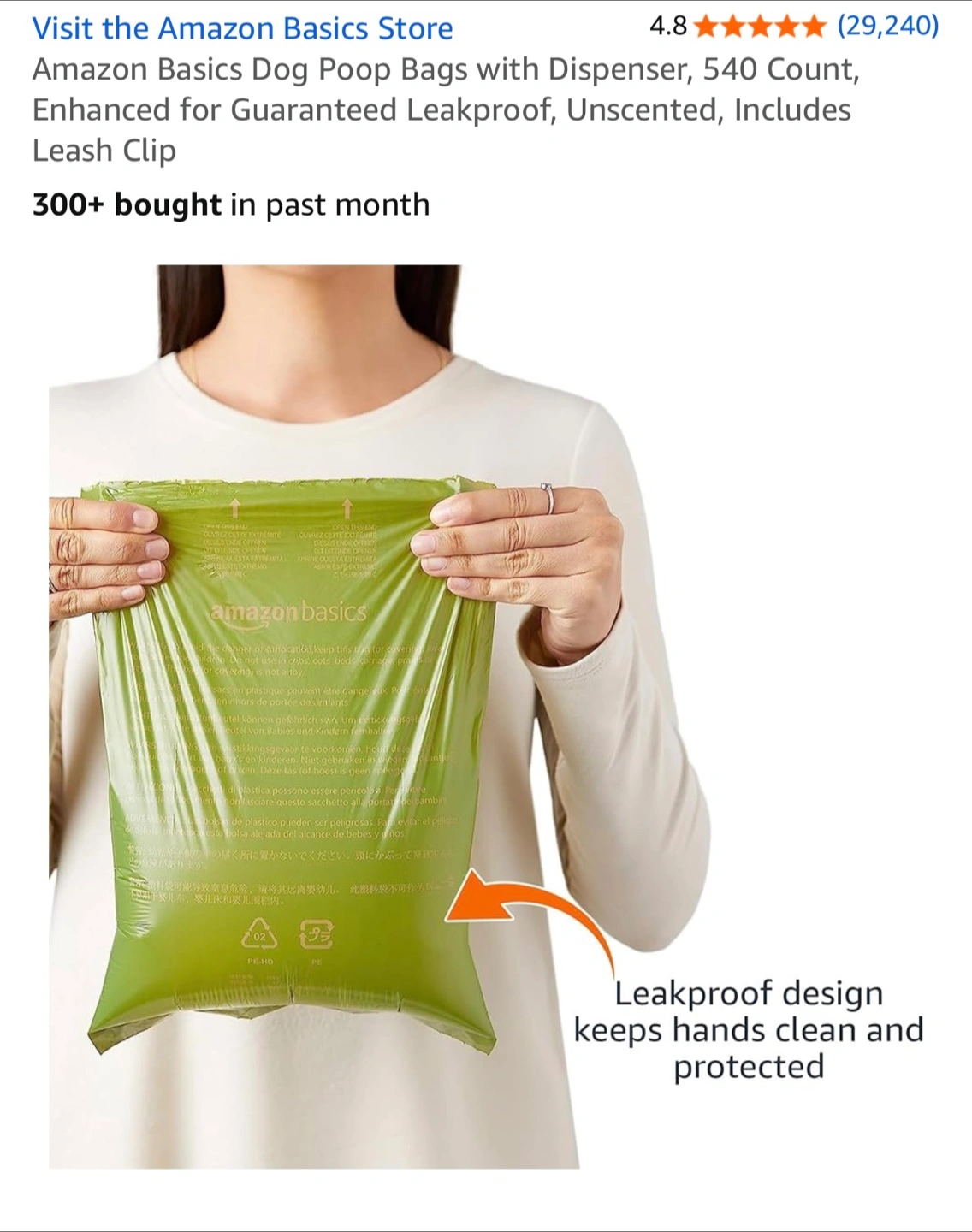 Selling 23 new green dog bag rolls from a pack of Amazon Basics dog poop bags. There are 345 count of unscented bags (and I will include the 2 half rolls for free). They are enhanced for guaranteed leakproof use and come with a leash clip.