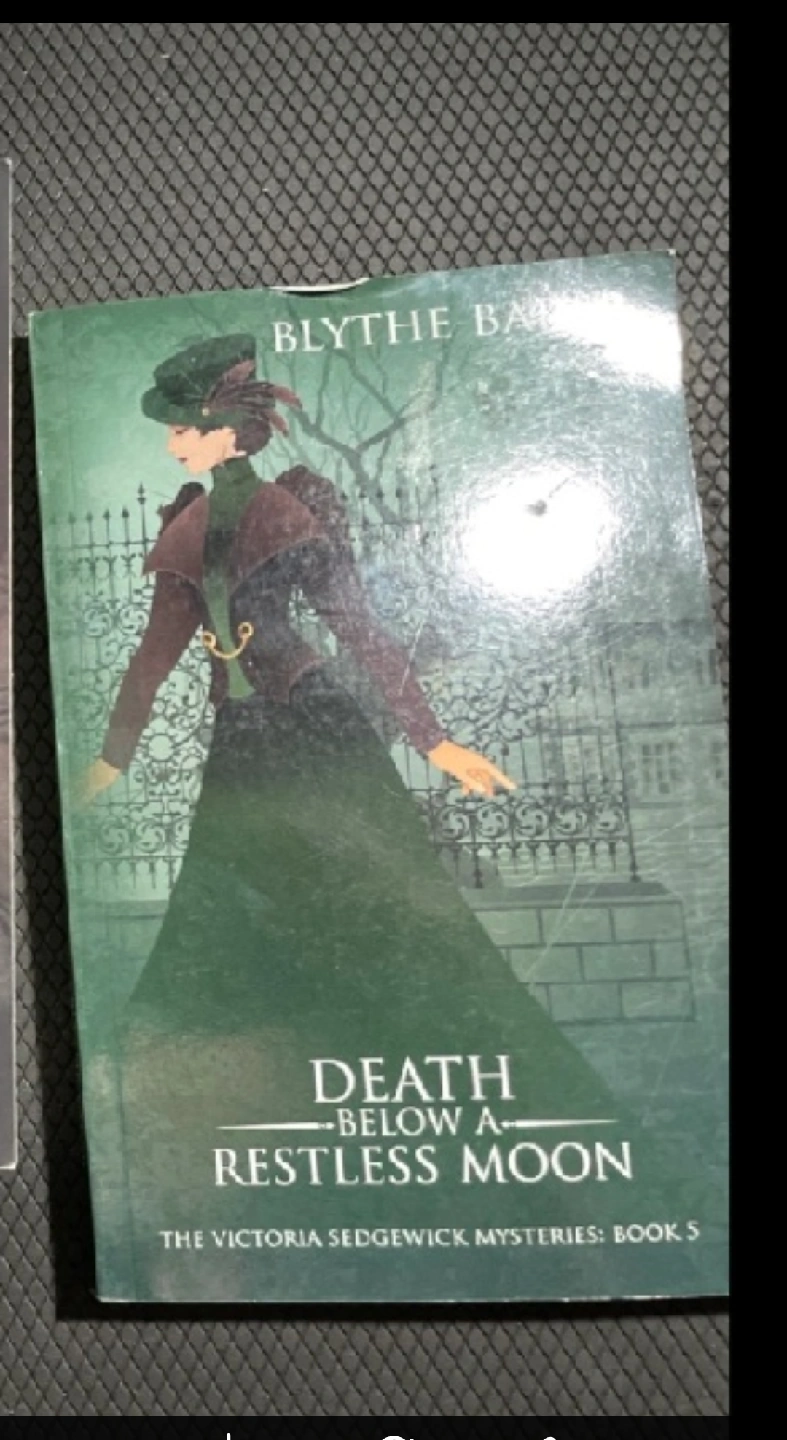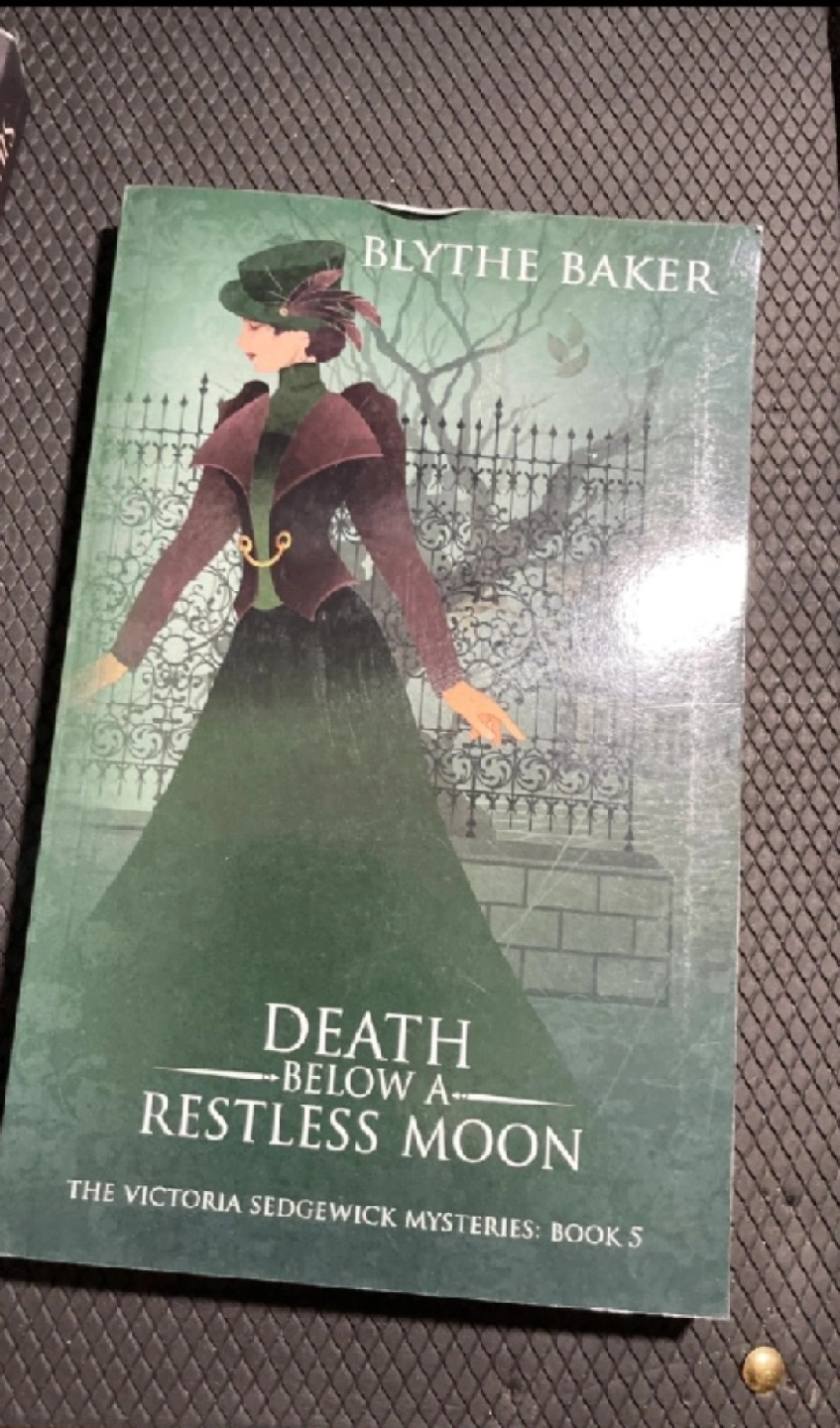 Selling the book Death Below a Restless Moon by Blythe Baker. It's part of The Victoria Sedgewick Mysteries series, Book 5. A great read for mystery lovers! #free #novelbooks #mysterybooks **msg or contact for details for pickup**