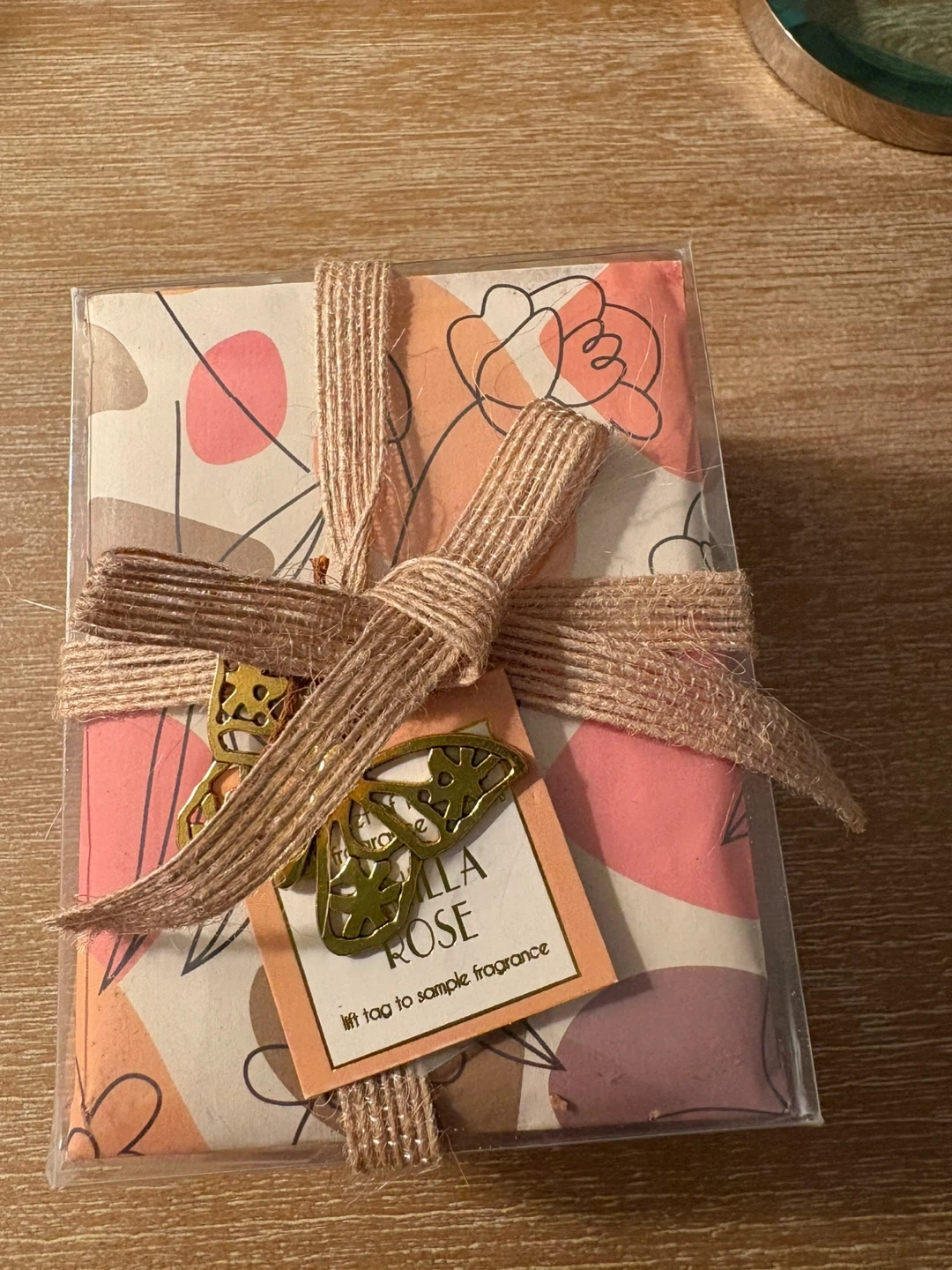 These sachets , new in package, have a lovely vanilla rose scent, perfect for freshening up small spaces like drawers, closets, or suitcases! The package includes 12 sachets, all neatly arranged and tied with a rustic twine. The manufacture date is July 10, 2023, so they're still fresh and ready to use as the package has never been opened.