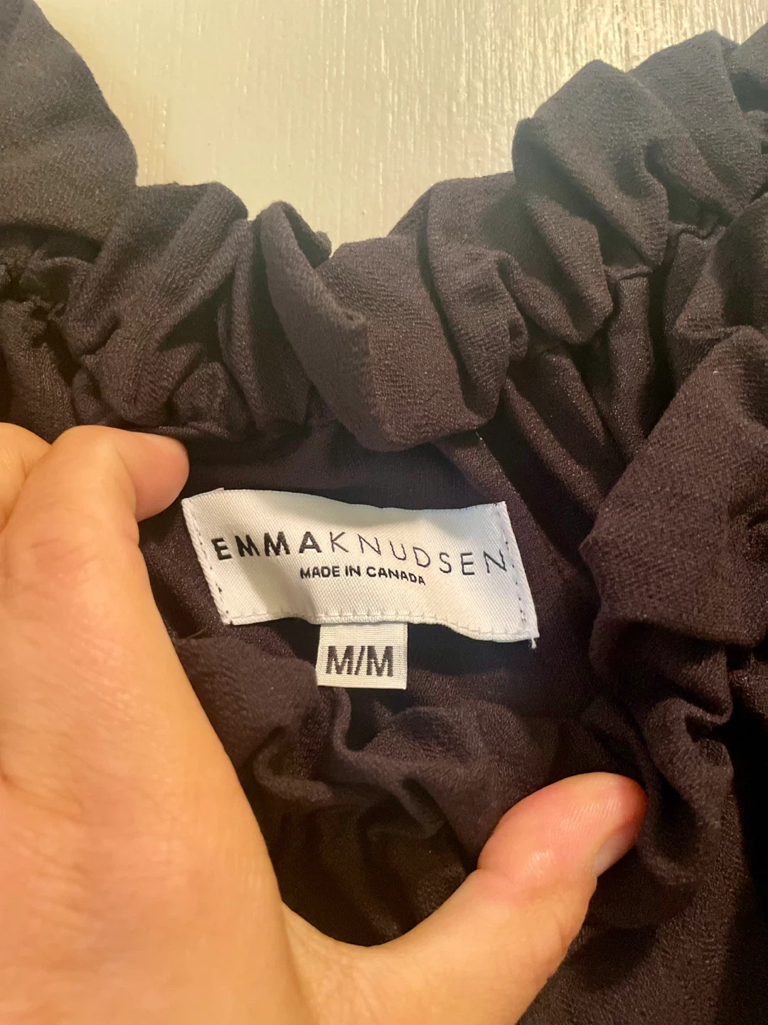 Selling a lovely black blouse from Emma Knudsen! It's a size M/M and in great condition. This top is perfect for a casual day out or dressed up for an evening event. Made in Canada!