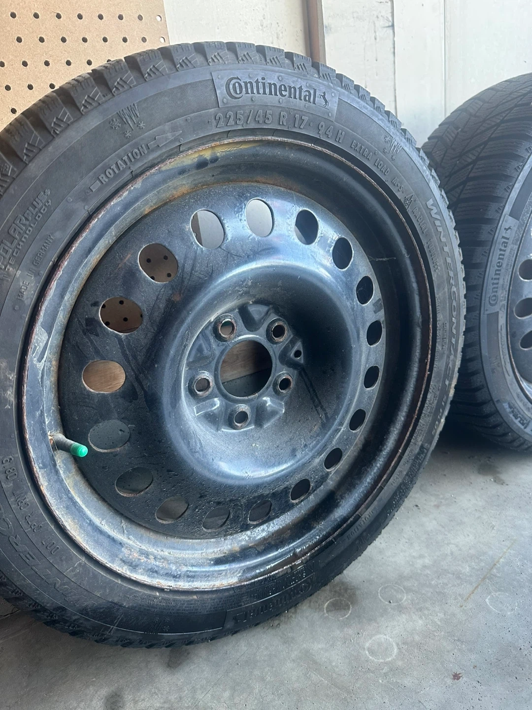 15Selling a set of three Continental WinterContact tires. The size is 225/45 R17. They are in used condition and ready for the winter season! There’s a fourth rim with out a tire that comes with it.