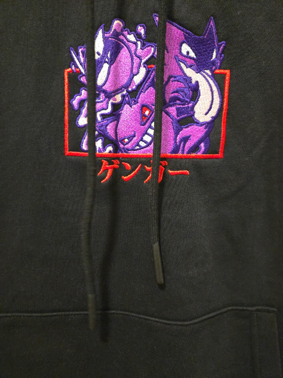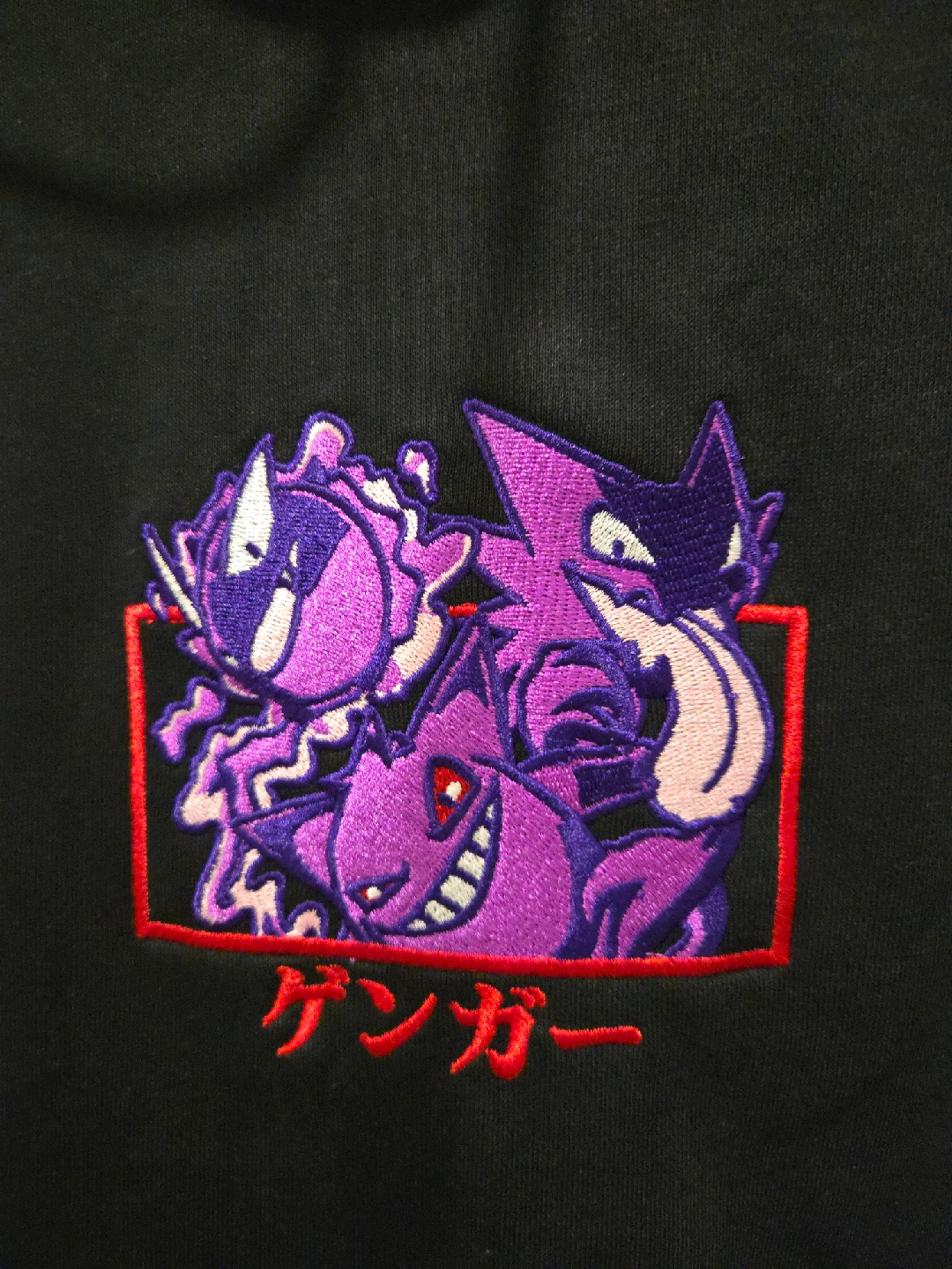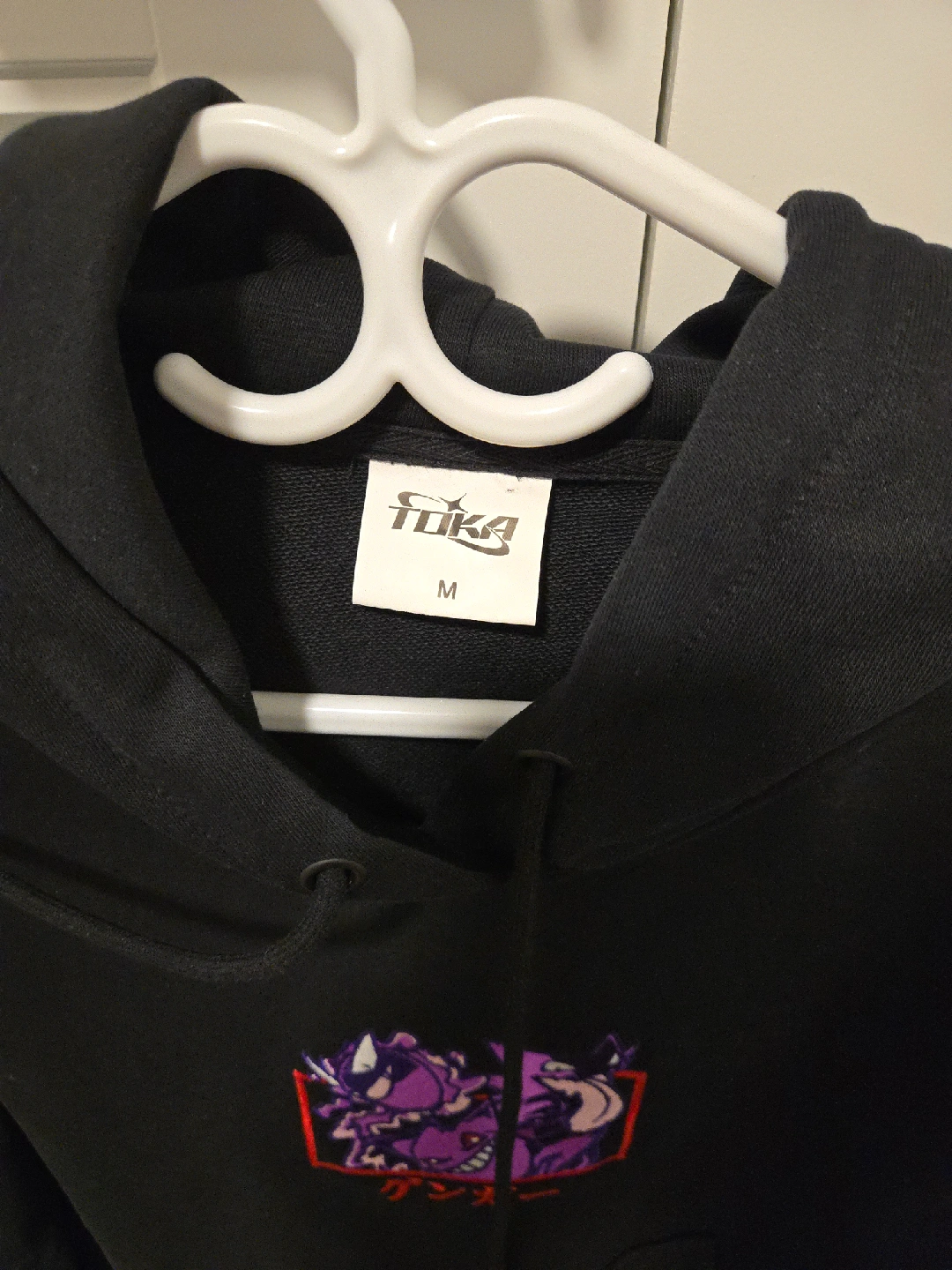 Black hoodie featuring an embroidered design of Gengar, Haunter, and Gastly with Japanese text. Brand: TOKA Size: Medium Color: Black with purple/red embroidery Front pocket & adjustable hood Comfortable, casual, and perfect for Pokémon fans 📍 Pickup in Eastwood, delivery can be arranged. Check my other listings too!