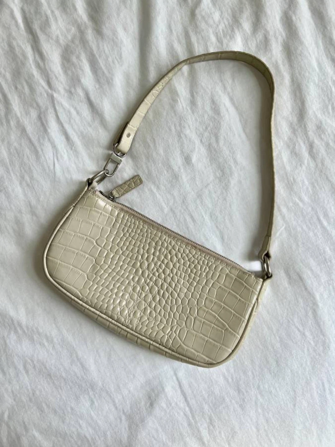 By Far Rachel Cream Croc Embossed Leather Handbag Purse
