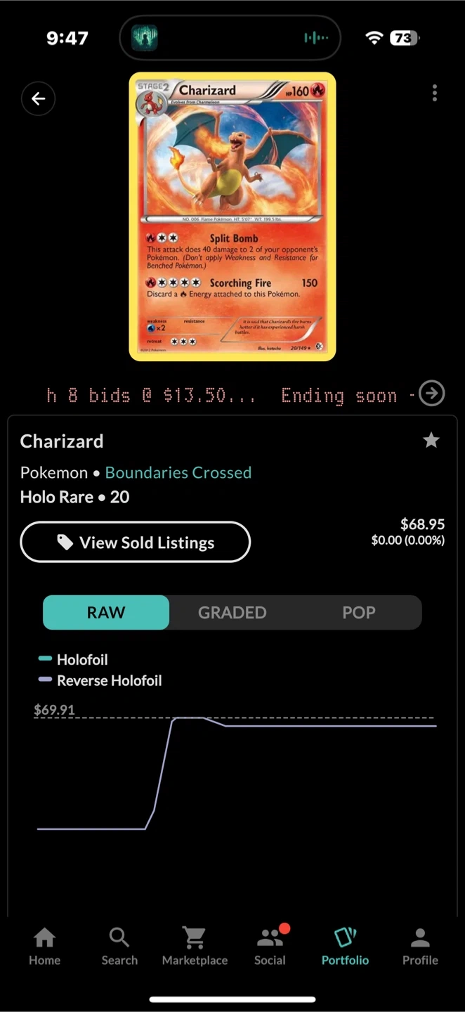 Selling a Charizard Pokemon card from the Boundaries Crossed series! It's a holo rare card in good condition. A great addition to any collection! $68 market value