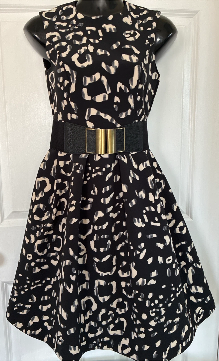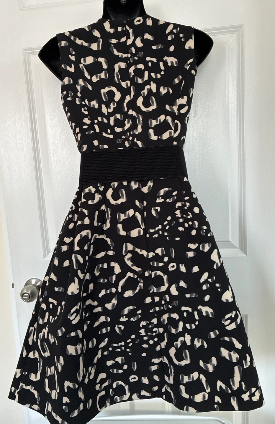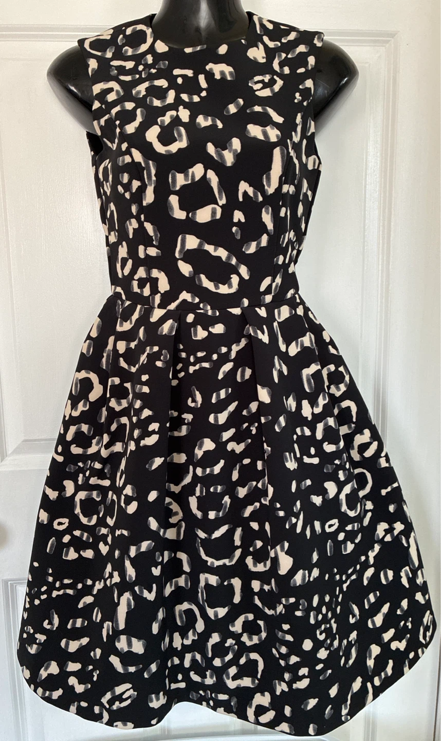 Cute H&M dress with a black and beige print! It's versatile sleeveless and perfect for warmer weather. Wear it with a belt or match it with a pearl necklace. The dress is in great condition and ready for a new home!