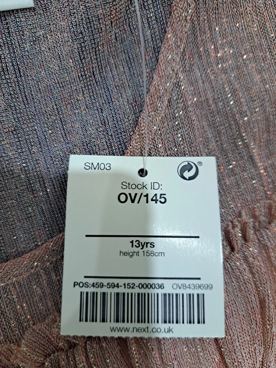 Selling a lovely Next girls dress, perfect for a special occasion! It's a size 13 years (height 158cm) and features a beautiful shimmering fabric. In great condition and has never been used at all.