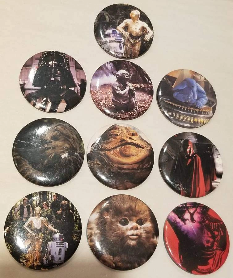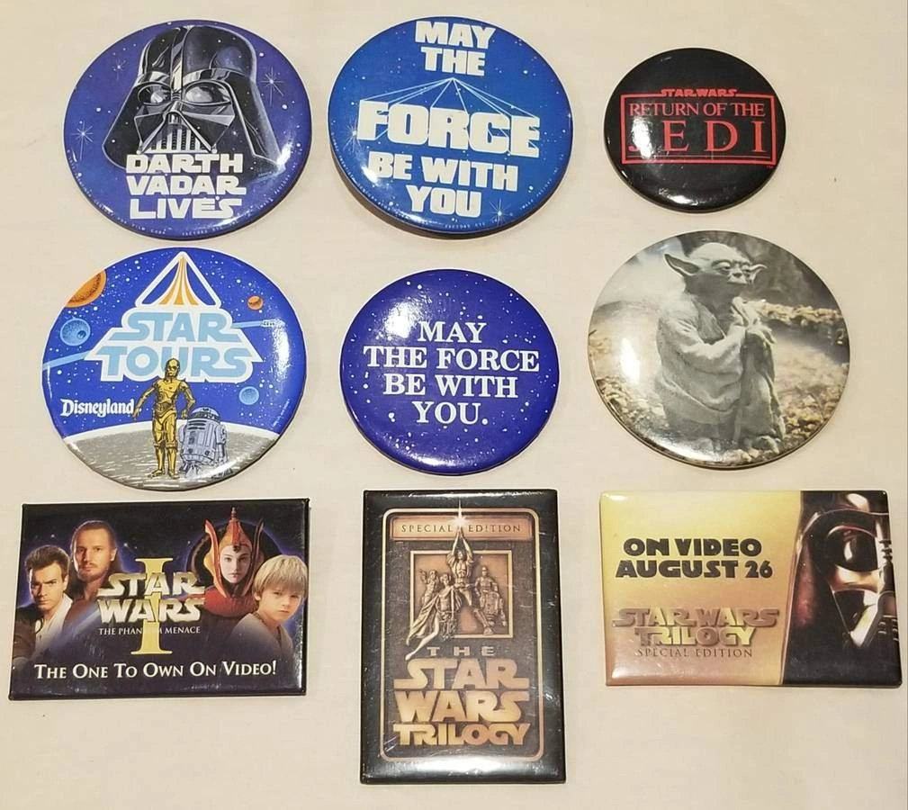 Vintage Star Wars Pinback Button Lot – 19 pcs Lucasfilm & Promo E-Transfers Accepted Pick Up Anytime Collection of 19 vintage Star Wars pinback buttons, including rare 1983 Lucasfilm releases and promotional pins. Features large character pins (Darth Vader, Yoda, Star Tours Disneyland, “May the Force Be With You”), mid-size Return of the Jedi era pins with C-3PO, R2-D2, Chewbacca, Ewoks, Jabba the Hutt, and Emperor’s Guard, plus 3 rectangular video release promo pins (Phantom Menace, Star Wars Trilogy Special Edition, and August 26 release promo). All pins are in good vintage condition with working clasps. A great lot for Star Wars collectors and memorabilia fans. star wars memorabilia lucasfilm pinbacks return of the jedi 1983 darth vader yoda c-3po r2-d2 disneyland star tours buttons $175 CAD (set of 19)