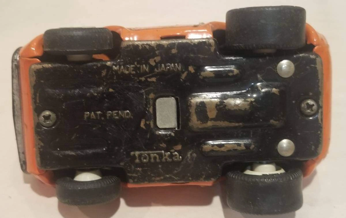Vintage Tonka Diecast Car – 4.25" Made in Japan (1970s) E-Transfers Accepted Pick Up Anytime Original 1970s Tonka diecast toy car, made in Japan. Measures 4.25” long. Features orange paint, Tonka decal on hood, and racing sponsor stickers on the sides (Shell, STP, etc.). A great collectible for Tonka fans and vintage toy enthusiasts. Shows playwear and decal wear but still solid. Tonka diecast from this Japanese line are scarcer than the big pressed-steel Tonka trucks and are sought after by collectors. Tonka, diecast car, vintage toy, Shell, STP, racing car, made in Japan, collectible