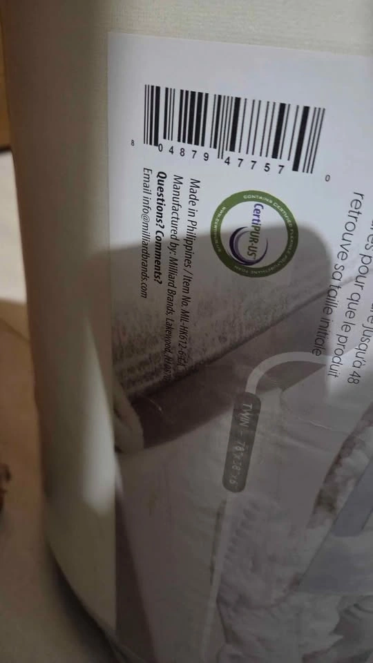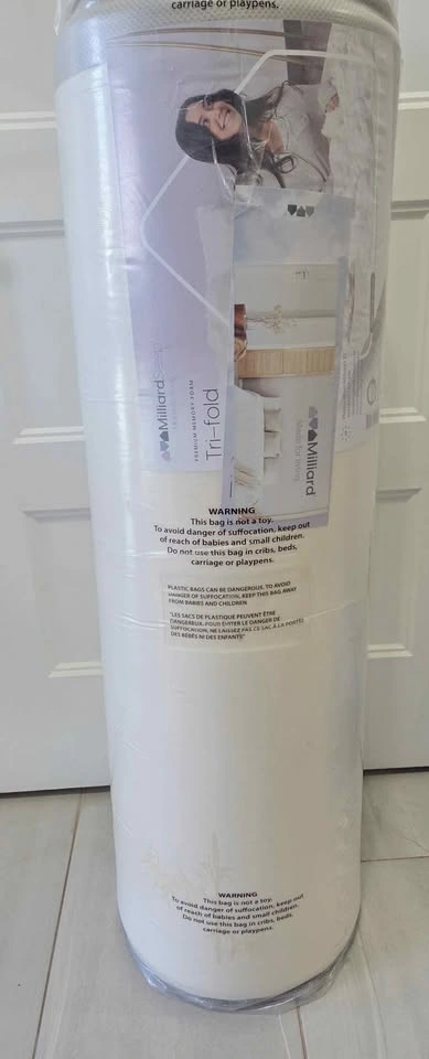 Brand new folding mattress. It comes vacuum sealed, compressed, rolled and wrapped in plastic (not box). Milliard Trifold Mattress, Twin Size, 6 inch, Portable Foldable Mattress Twin with Medium Firm Foam, Washable Cover, Tri-Folding Floor Bed, Fold Up Guest Bed, RV Travel, Camping, 75" x 38” Product details: Brand: Milliard Size: Twin Product Dimensions: 75"L x 38"W x 6"Th Item Firmness Description: Medium Top Style: Tight Top Firm Support for Restful Sleep: Experience superior support with our high-density firm foam tri-fold mattress, designed for durability & stability. Ideal for those needing extra back & posture support, ensuring firm, comfortable sleep anywhere. Portable & Tri-Folding Design for Travel: This lightweight, foldable mattress folds neatly in seconds for easy storage & transport. Ideal for dorm rooms, RVs, road trips, camping, & small spaces, offering unmatched versatility for adults & kids. Washable Cover & Long-Lasting Freshness: Designed with a soft, removable machine-washable cover, this memory foam tri folding mattress stays fresh & clean. Its breathable materials promote airflow, keeping you cool and comfortable through every season. Versatile for Any Sleep Setup: This trifold mattress adapts to your needs as a guest bed, floor mattress, camping mat, or dorm essential. Compact yet supportive, it provides a comfortable sleep solution everywhere. Available in Queen, Full, & Twin. Ideal for Travel, Camping & Extra Sleep Space: Whether used as a guest bed, travel mattress, or floor sleeping pad, this tri-fold design provides comfort and portability. Perfect for those needing a quick, easy-to-store folding bed sleeping solution.