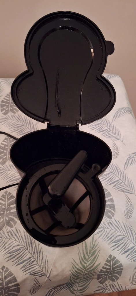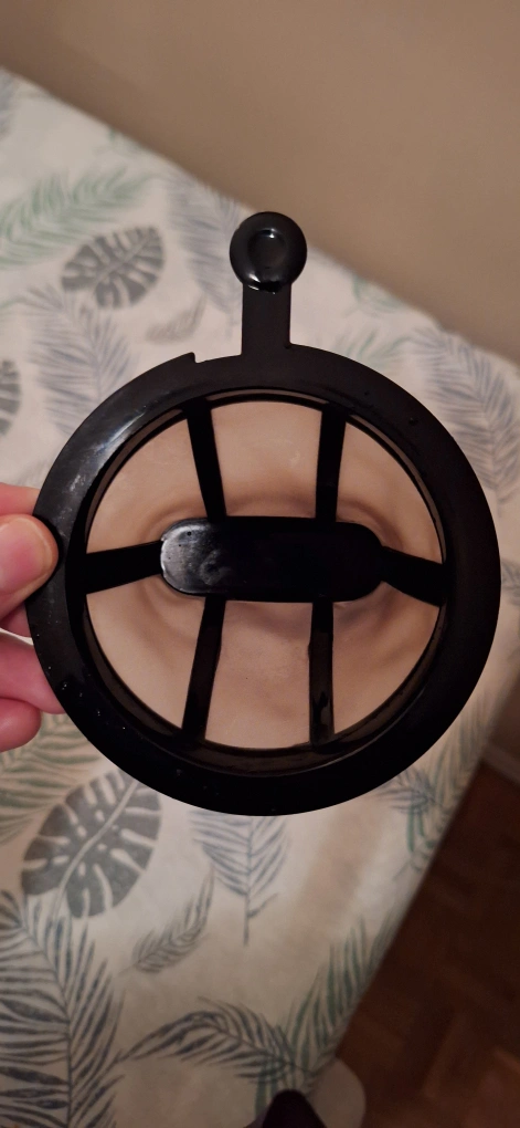 It's in good condition and ready to use! Minor cosmetic wear to the brand logo. Mild stain on the filter.