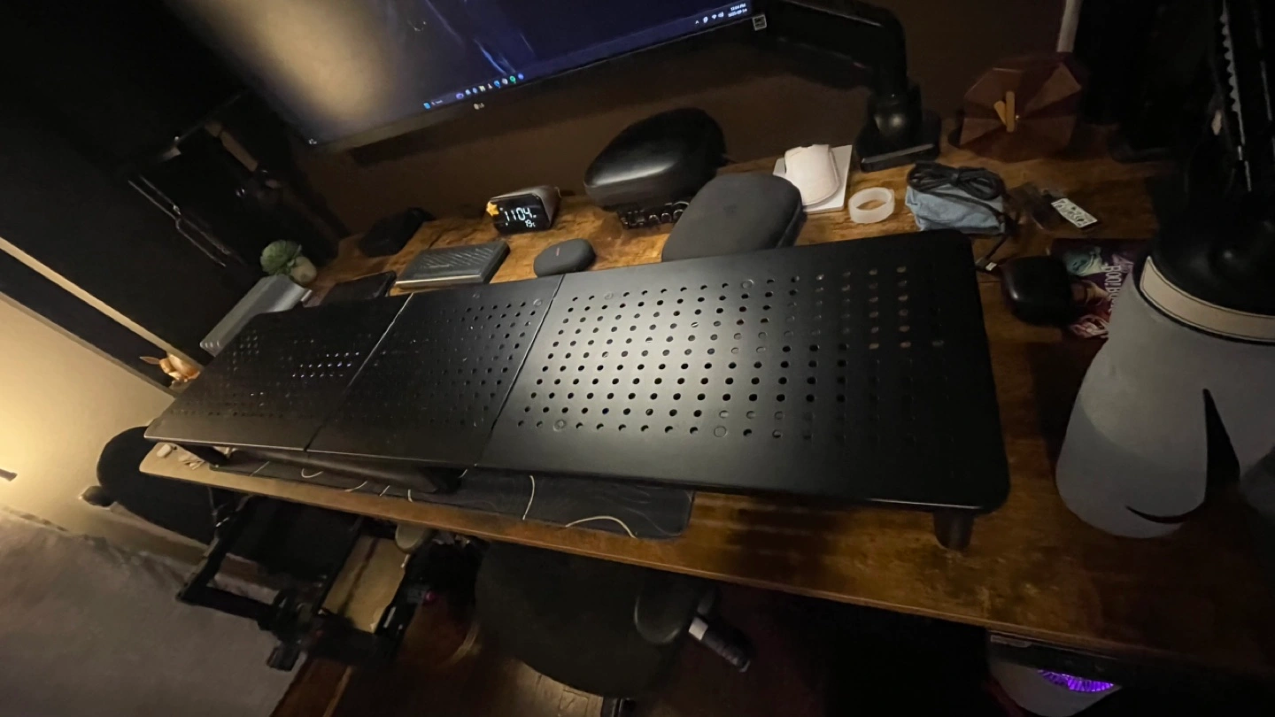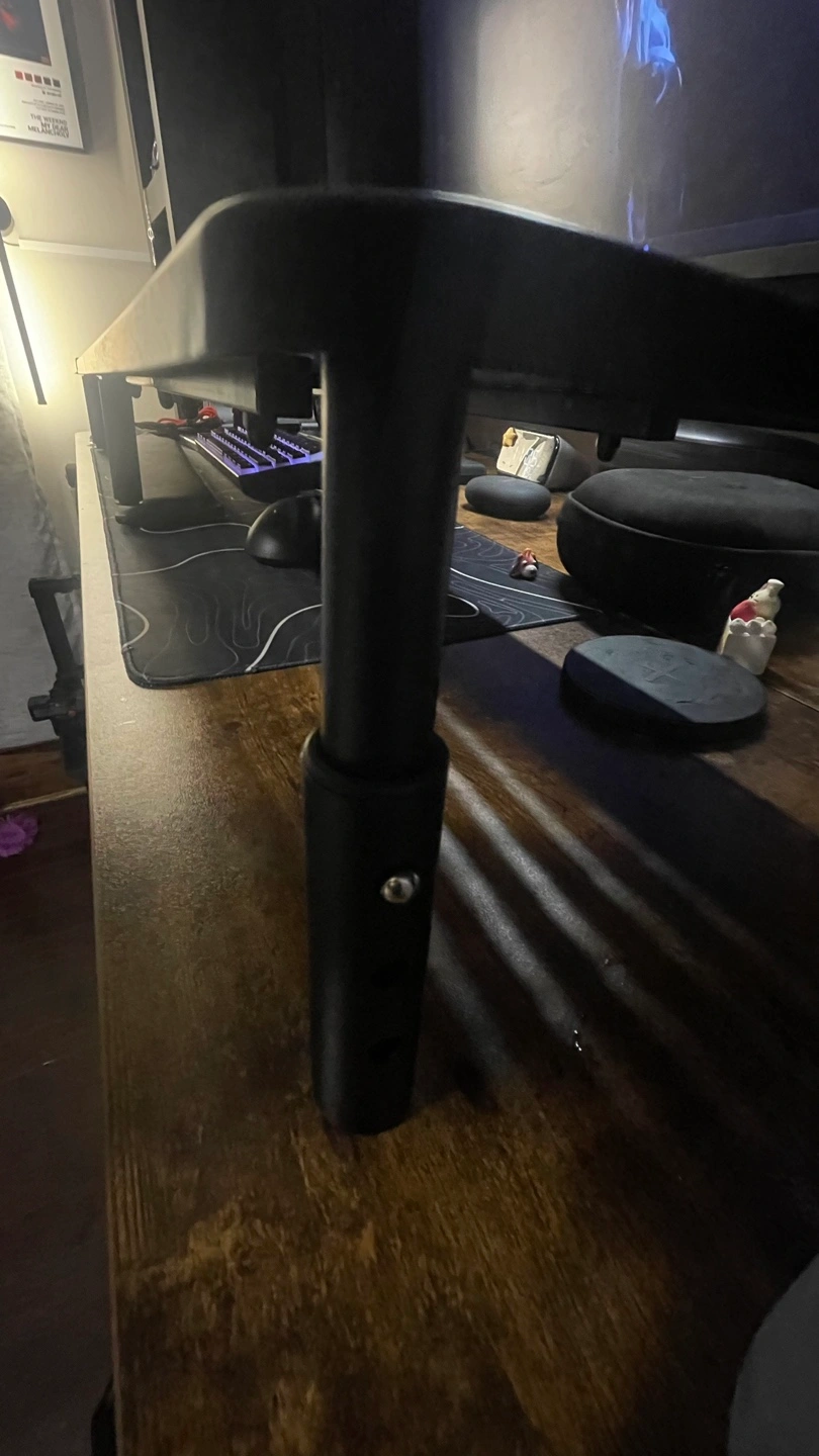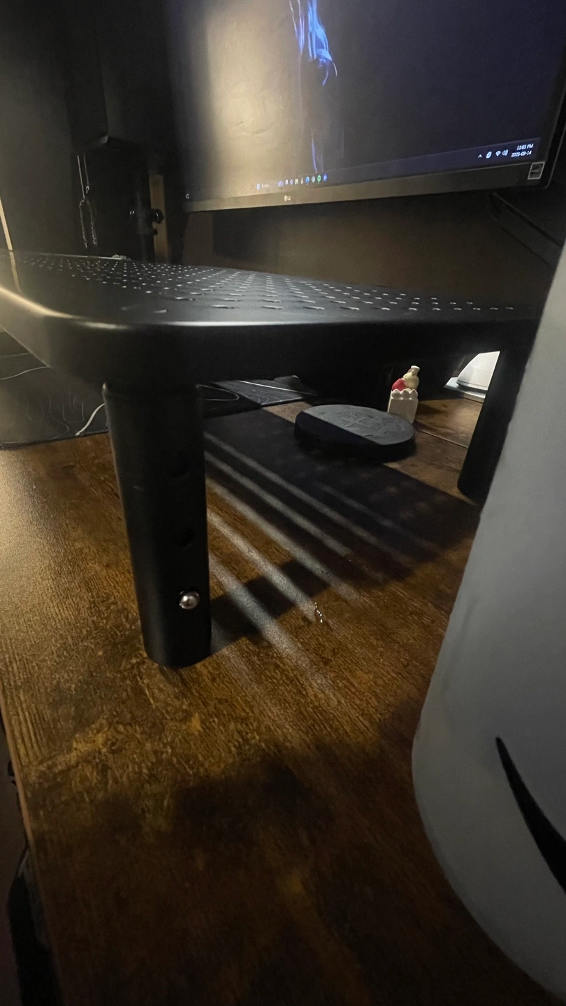 Declutter your desk with this handy adjustable monitor stand riser! It's in great condition and perfect for raising your monitor to a more comfortable viewing height. The black finish will match any setup.