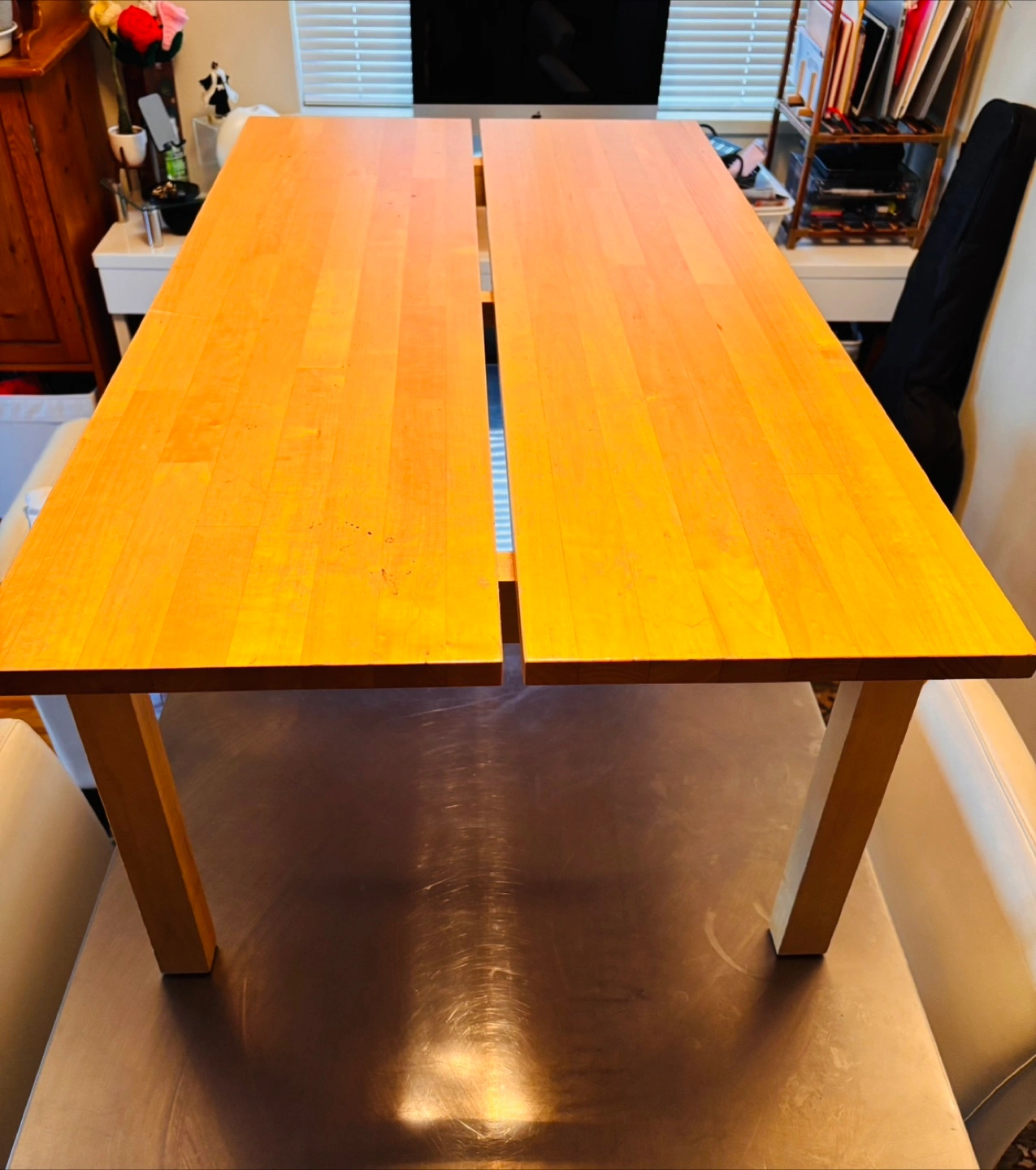 Selling an IKEA coffee table in light pine wood. It's in good condition except for a few dents and scratches and ready for a new home. Perfect for living room or workspace.
