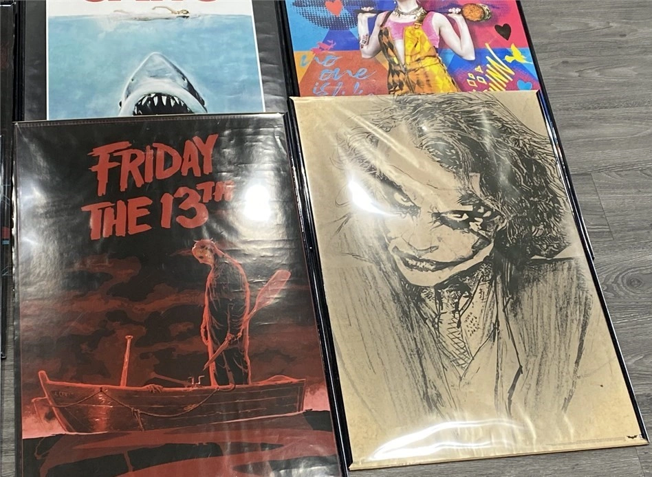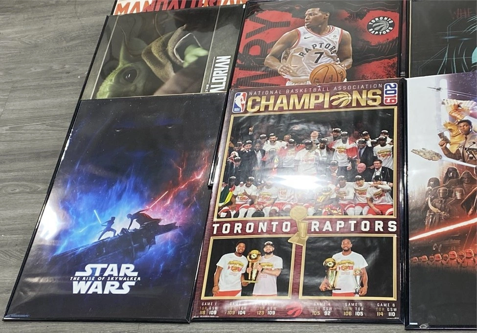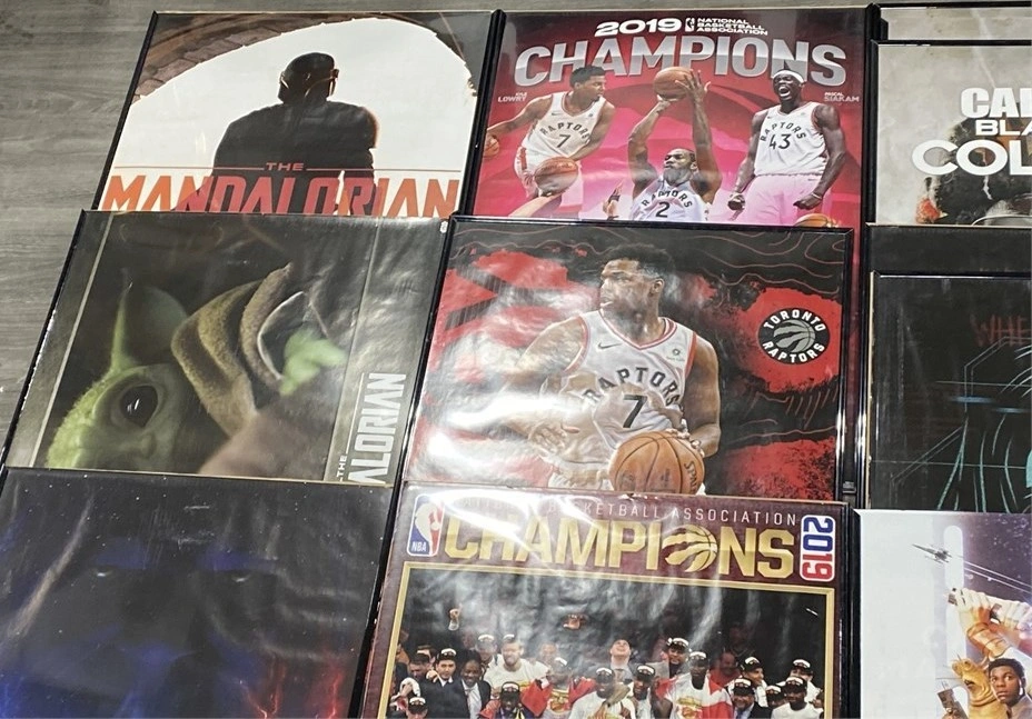 18 Framed Collector Posters – Star Wars, Jaws, Joker, Raptors E-Transfers Accepted Pick Up Anytime Offered here is a collector’s set of 18 framed posters, each measuring approx. 22.5” x 34”. This is not just wall décor — it’s a mix of movie legends, horror icons, music and hip-hop history, gaming art, and NBA championship moments, all preserved in frames and ready to hang. Highlights include: Star Wars trilogy art + Rise of Skywalker The Mandalorian (2 designs incl. Baby Yoda) Classic horror: Jaws & Friday the 13th (2 variants) Joker sketch + Harley Quinn pop design Tupac black & white portrait Toronto Raptors 2019 Champions (3 different celebratory posters) Call of Duty: Black Ops Cold War Plus unique fantasy & mixed pop-art collages Collector Pricing Breakdown: Star Wars Rise of Skywalker – $30 Star Wars Vader helmet art – $25 Star Wars duel scene – $20 Mandalorian (main poster) – $25 Mandalorian (Baby Yoda) – $25 Jaws classic – $30 Friday the 13th canoe scene – $25 Friday the 13th red variant – $25 Joker sketch style – $30 Harley Quinn colorful – $25 Tupac portrait – $25 Call of Duty: Cold War – $20 Raptors 2019 action shots – $20 Raptors 2019 team celebration – $25 Raptors 2019 gold lettering trophy – $25 Heavy Metal fantasy collage – $20 Red sci-fi fantasy collage – $20 Mixed pop-art collage – $20 Individual Value if Sold Separately: $440 CAD Group Price for All 18: $375 CAD (a savings of $65) This is a ready-made collector’s gallery, perfect for rec rooms, man caves, gaming setups, or anyone who appreciates film, sports, and music history. star wars posters, mandalorian framed poster, jaws framed poster, friday the 13th art, joker sketch poster, harley quinn wall art, tupac poster, call of duty framed poster, toronto raptors champions 2019, nba posters, framed movie posters, collector posters lot, vintage wall art Price: $375 CAD for all 18 framed posters