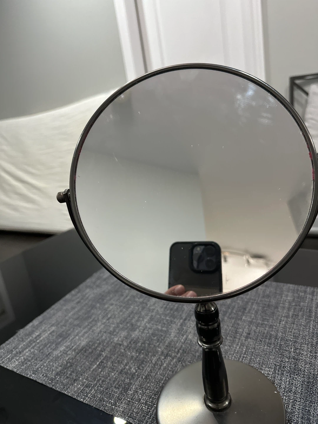 Selling a round vanity mirror. It's in great condition and would be perfect for getting ready in the morning or adding a touch of elegance to your space