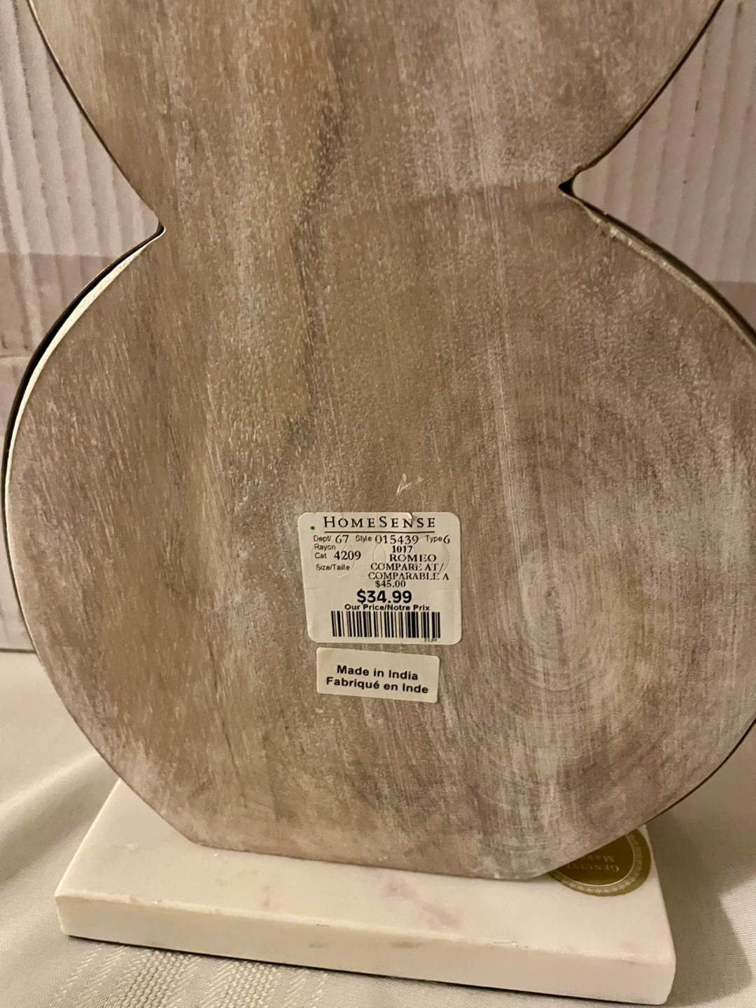 This charming snowman decor from Homesense is made of genuine marble and wood. It's a lovely piece to add to your winter decorations. Originally bought for $34.99!