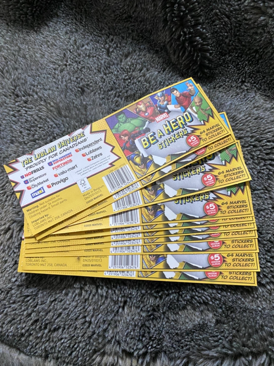 1 / 61 / 6Buy & SellFree - Marvel Be A Hero Stickers - 10x4 Stickers to Collect!Free - Marvel Be A Hero Stickers - 10x4 Stickers to Collect!FreeMarvel 'Be A Hero' stickers! 10 packs of 4 stickers. - free with pickup near 401 & KennedyConditionNewWHERE TO MEETCheck LocationView MapSELLERverifiedStephAgincourt S1000+173 reviews1 chats·2 favorites·71 viewsSEND CHAT TO SELLERHi Steph! I’m interested in your listing.Hi Steph! I’m interested in your listing.Get the Karrot app to chatSign In to chat